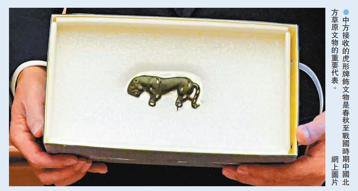 據悉,今次接收的虎形牌飾文物具有典型的鄂爾多斯青銅藝術風格,是春秋至戰國時期中國北方草原文物的重要代表,對於研究中國古代草原文化與族群交流具有重要意義。