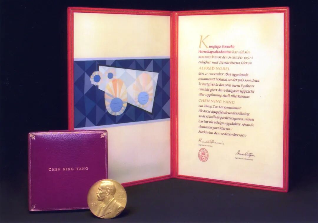 1956年,楊振寧與李政道共同發表論文,提出了在弱相互作用下宇稱可以不守恒的思想,並提出了可能的實驗檢驗方案。這個革命性的觀念很快被吳健雄等人的實驗證實。楊振寧與李政道「因他們對宇稱不守恒定律的深刻探索以及由此帶來的基本粒子領域的許多重要發現」,獲得1957年諾貝爾物理學獎,共同成為最早獲得諾貝爾獎的中國人。