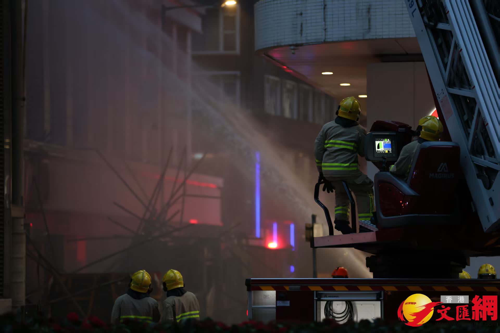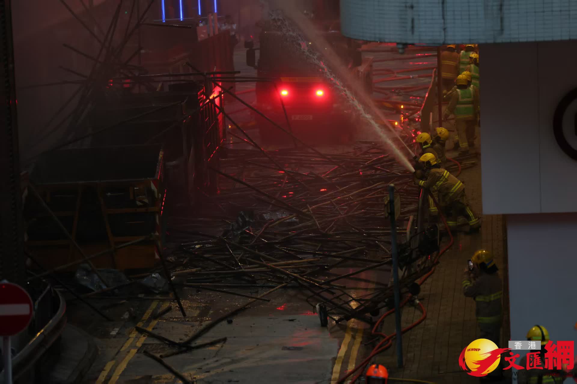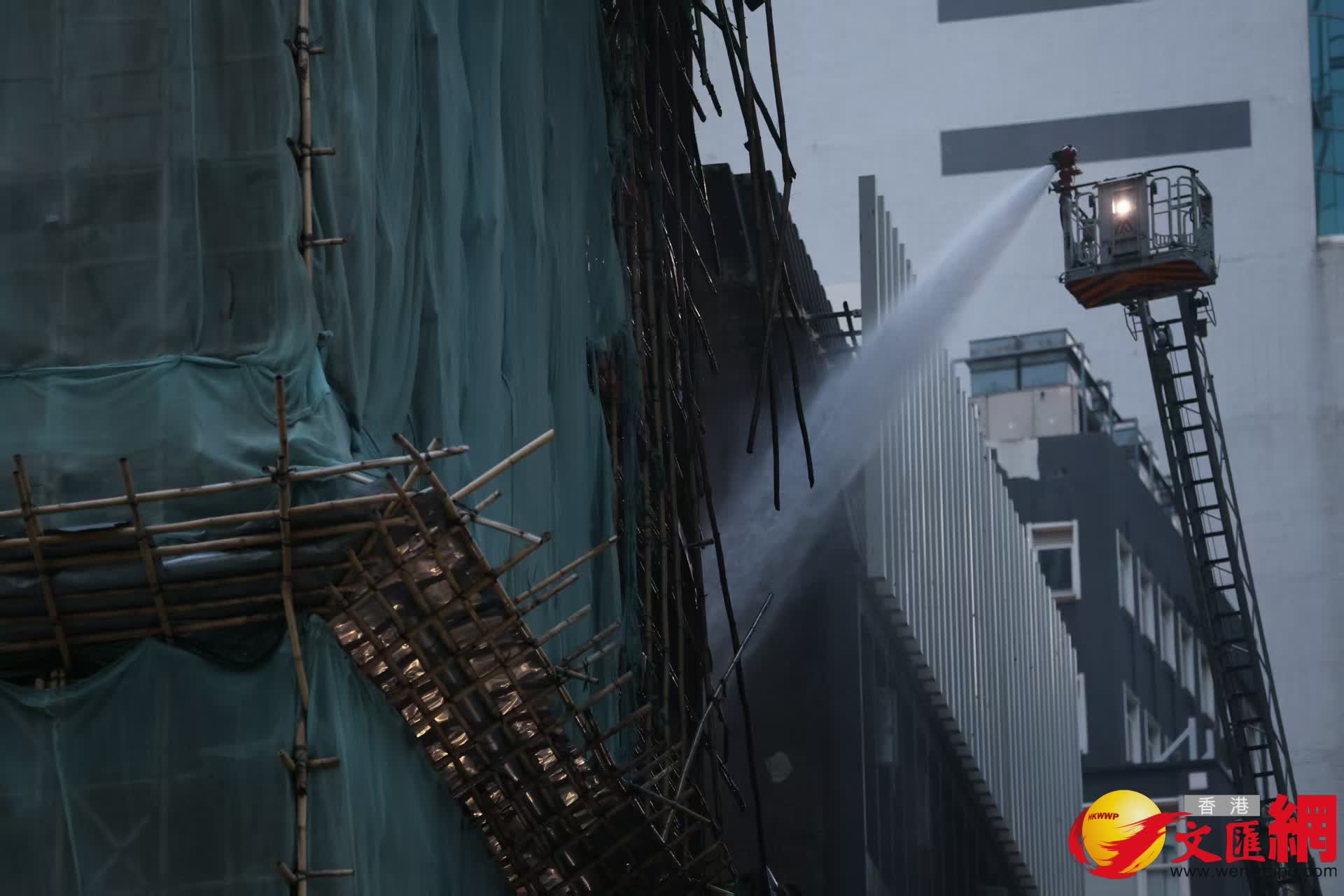 干諾道中34至37號大廈後巷棚架起火, 3男子被困, 初步未有人受傷。香港文匯報記者萬霜靈 攝