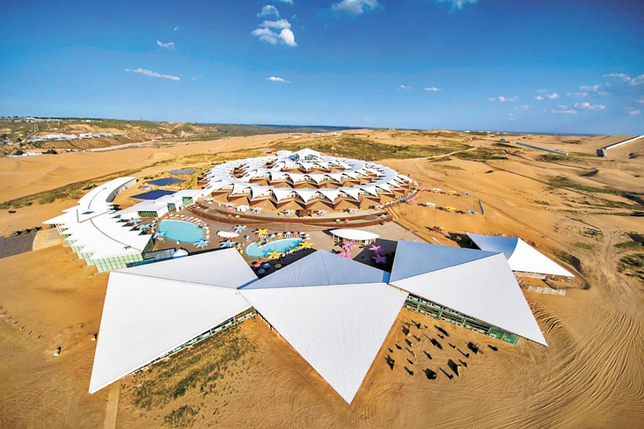 坐落在響沙灣沙漠的蓮花度假酒店,遠遠望去像極了一朵白色的蓮花綻放在金燦燦的沙漠中。它是「2016年全世界最期待酒店」中唯一一家中國酒店。晚上可以自由選擇前往休閒活動室、游泳館、健身房,亦可到4樓的蓮花酒吧無限暢飲,以及有大型篝火歌舞表演等活動,使你樂而忘返。