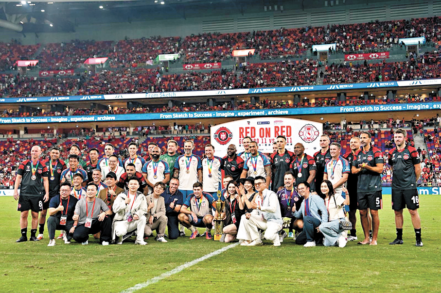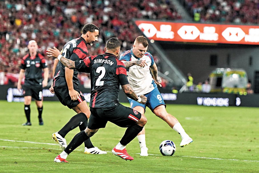 在啟德體育園主場館舉行的「足球盛會」一浪接一浪,昨日盛大上演的「雙紅會:謝拉特、里奧費迪南邀請賽」星光熠熠,由昔日利物浦隊長謝拉特與曼聯隊長里奧費迪南,領銜兩隊名宿為香港球迷獻技。最終利物浦在27,081名觀眾見證下,以4:2擊敗曼聯,英超雙紅會前由名宿先贏一仗,其中獲謝拉特助攻取得入球的林嘉緯直言「夢幻」。