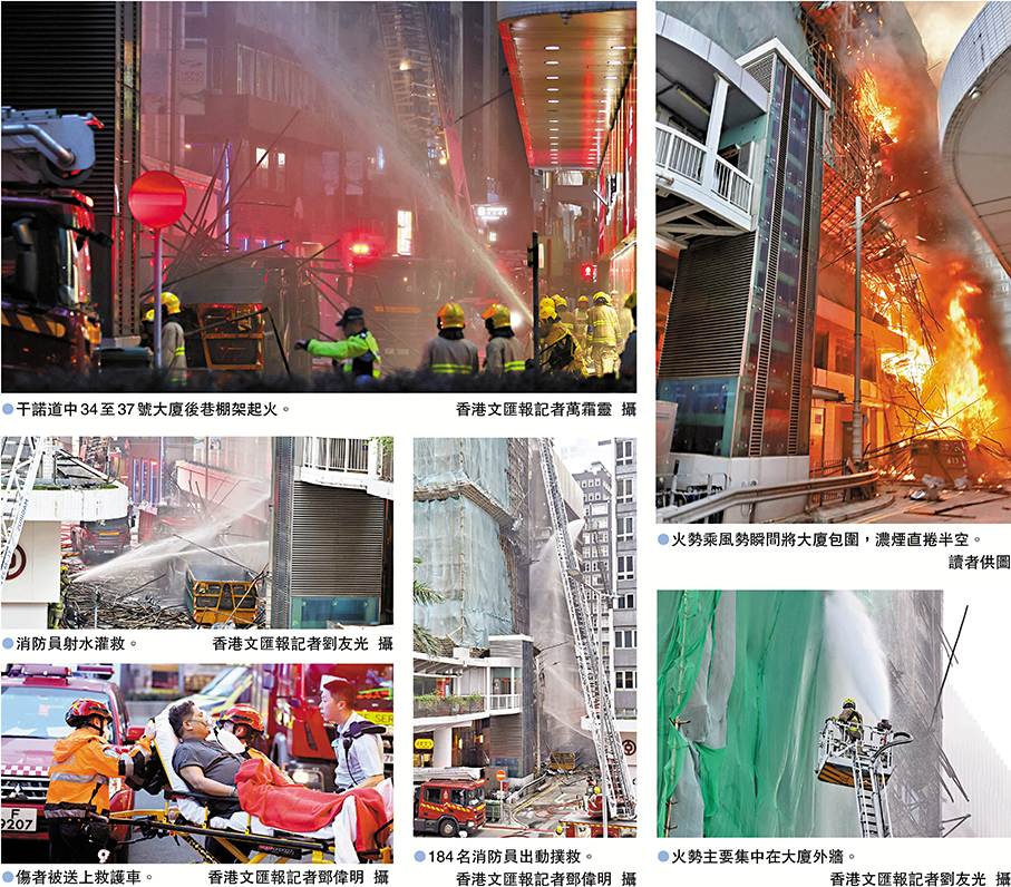 中環干諾道中34號至37號華懋大廈外牆棚架昨日下午4時許起火,火勢乘風勢瞬間將大廈包圍,濃煙直捲半空,維港對岸亦清晰可見。消防員到場灌救及將火警升為三級,出動184名消防員和救護員撲救和救援。火警中有58人自行疏散,6人一度被困華懋大廈和毗鄰大廈,其後安全獲救,其中4人因吸入濃煙及擦傷送院治理。消防員在晚上9時13分大致將火救熄,深夜仍持續向火場射水降溫。消防處火警調查隊正調查起火及火勢蔓延迅速的原因。