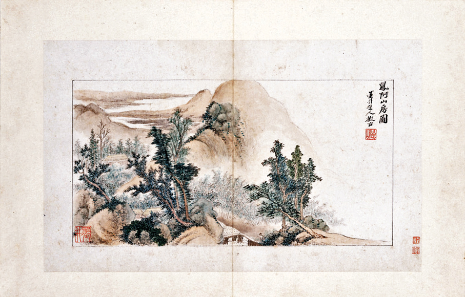 本冊描繪明遺民侯大年以《詩經》理想中的隱居之所。侯氏為清初嘉定人,計劃於祖宅葉池築室自居。好友吳歷、梅庚、張遠等為之繪製畫冊後,侯氏邀請南北方名士題詠,歷時數十年。全冊共六十餘題跋,內容圍繞「鳳阿山房」構想。此冊後歸潘博山及黃氏家族收藏。中大文物館藏二冊由吳歷領銜,構圖繁密、筆墨精緻,為書齋圖的重要作品,展現清初遺民文人的交遊網絡與藝術文化。