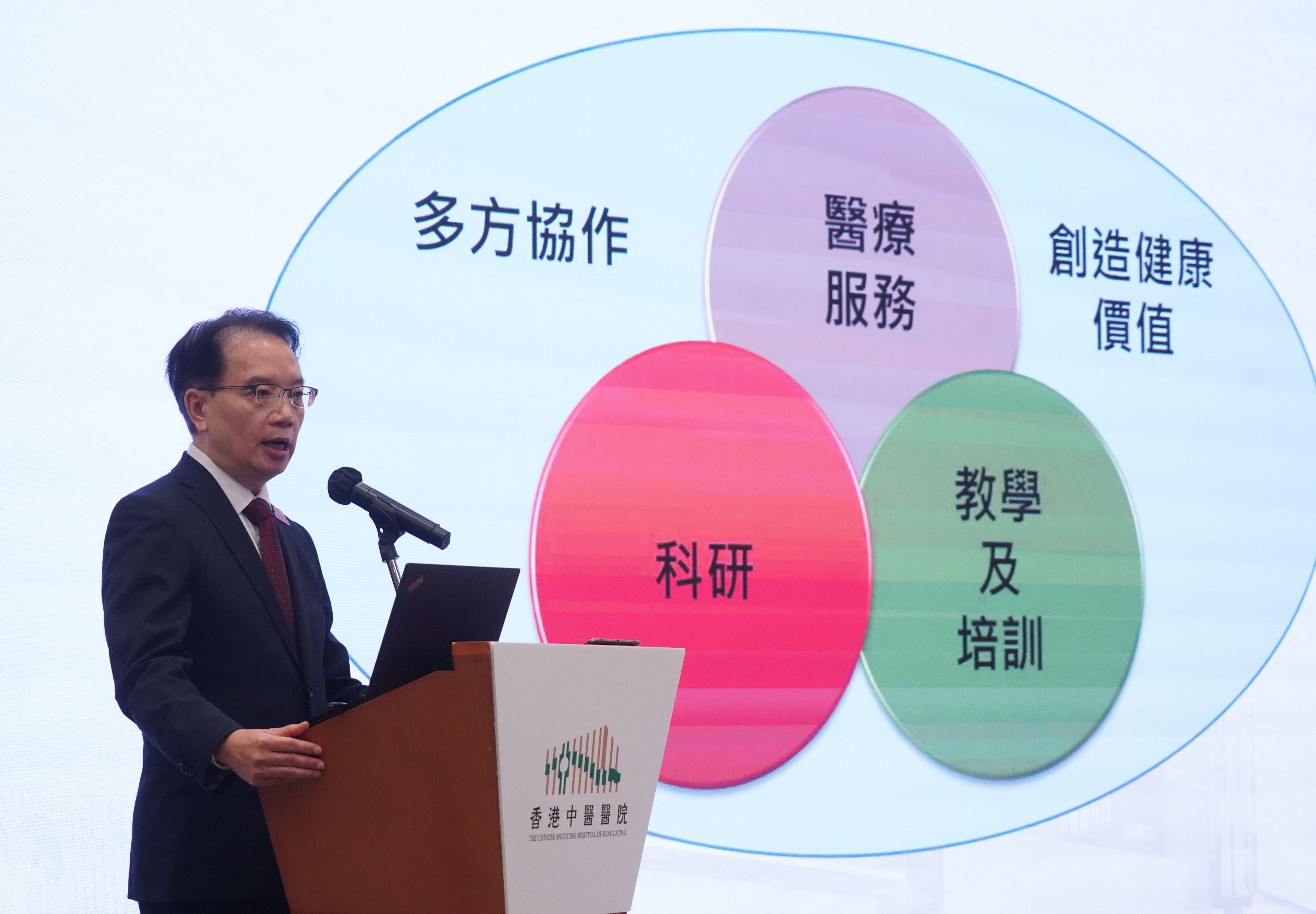 張偉麟重申,中醫院是政府直屬管理的醫院,並非醫管局轄下,亦非私立醫院,而是以公私營合作模式,委托浸會大學營運,局方會監管運作,首要的任務是推動香港的中醫藥發展。