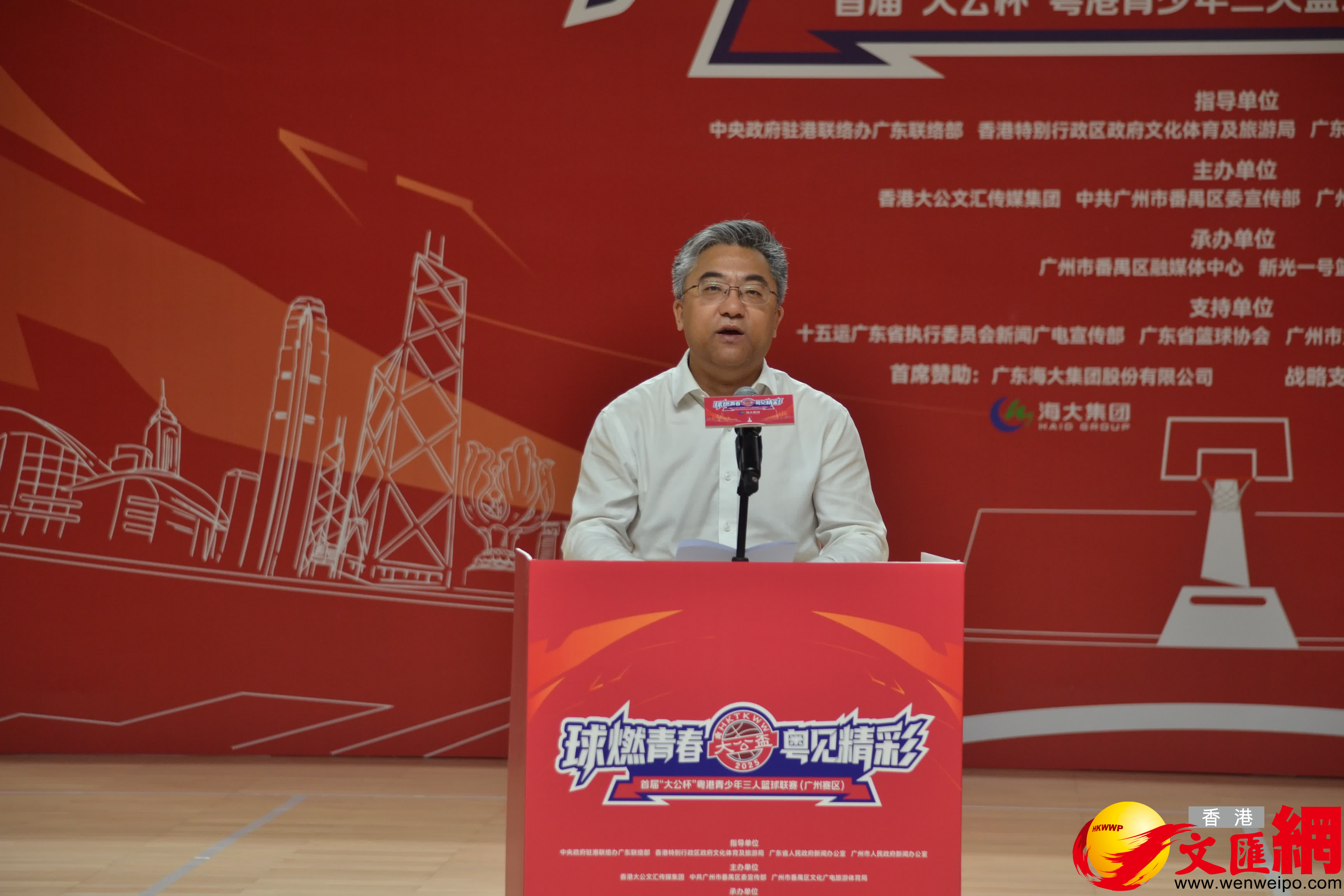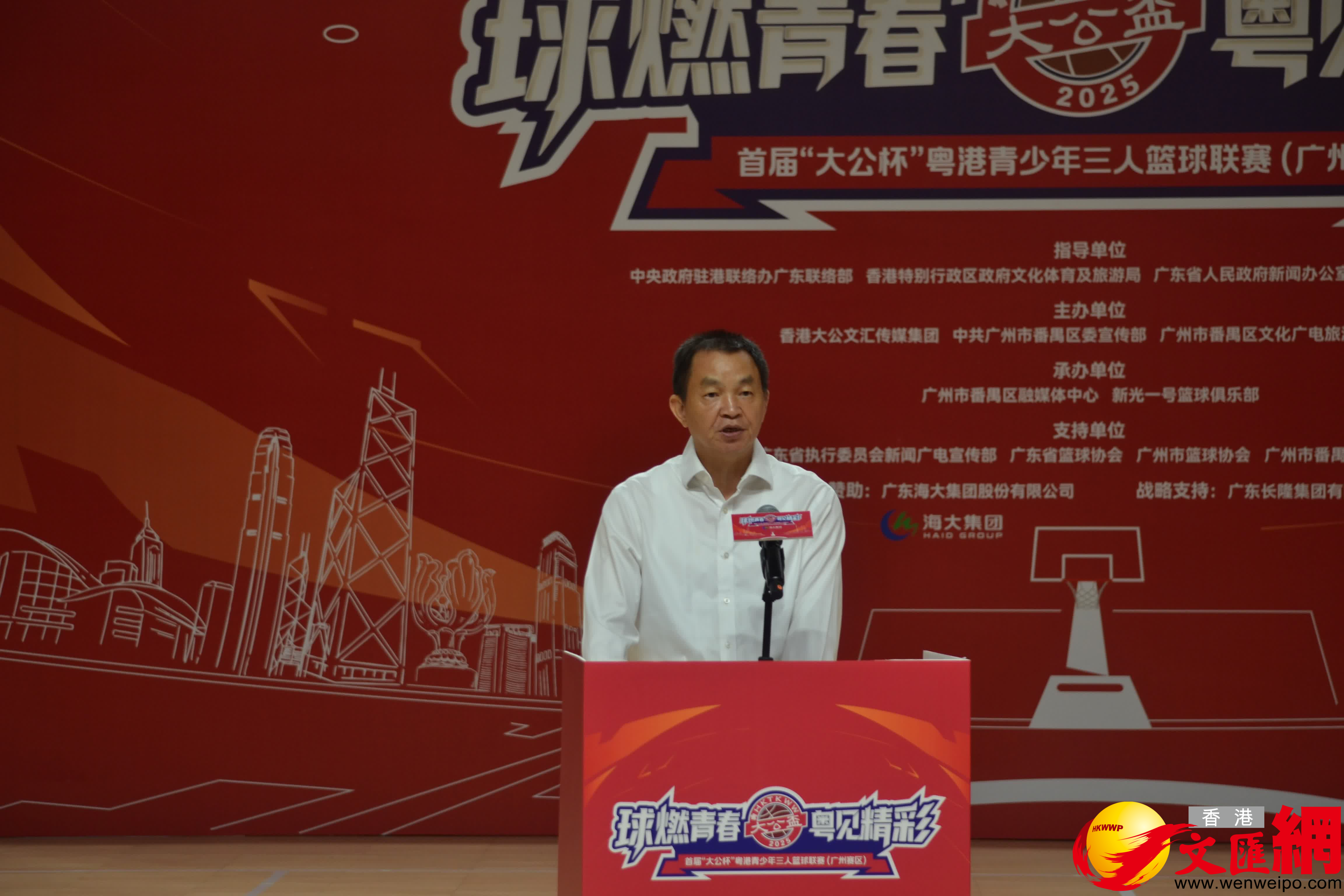 香港大公文匯傳媒集團副董事長、總經理鄭勇男在致辭中表示,「大公杯」是香港最具影響力的校園籃球賽事,今年首次拓展設立廣東賽區,正是對粵港深度融合大勢的積極順應。他特別提到,賽事期間同步開展的「國際青年體驗官廣東行」活動,將組織兩地青少年一同走訪廣東多地,實地感受灣區發展新貌,讓體育交流與文化體驗實現深度融合,期待這一活動能成為粵港協作交流、深入融合的生動縮影。