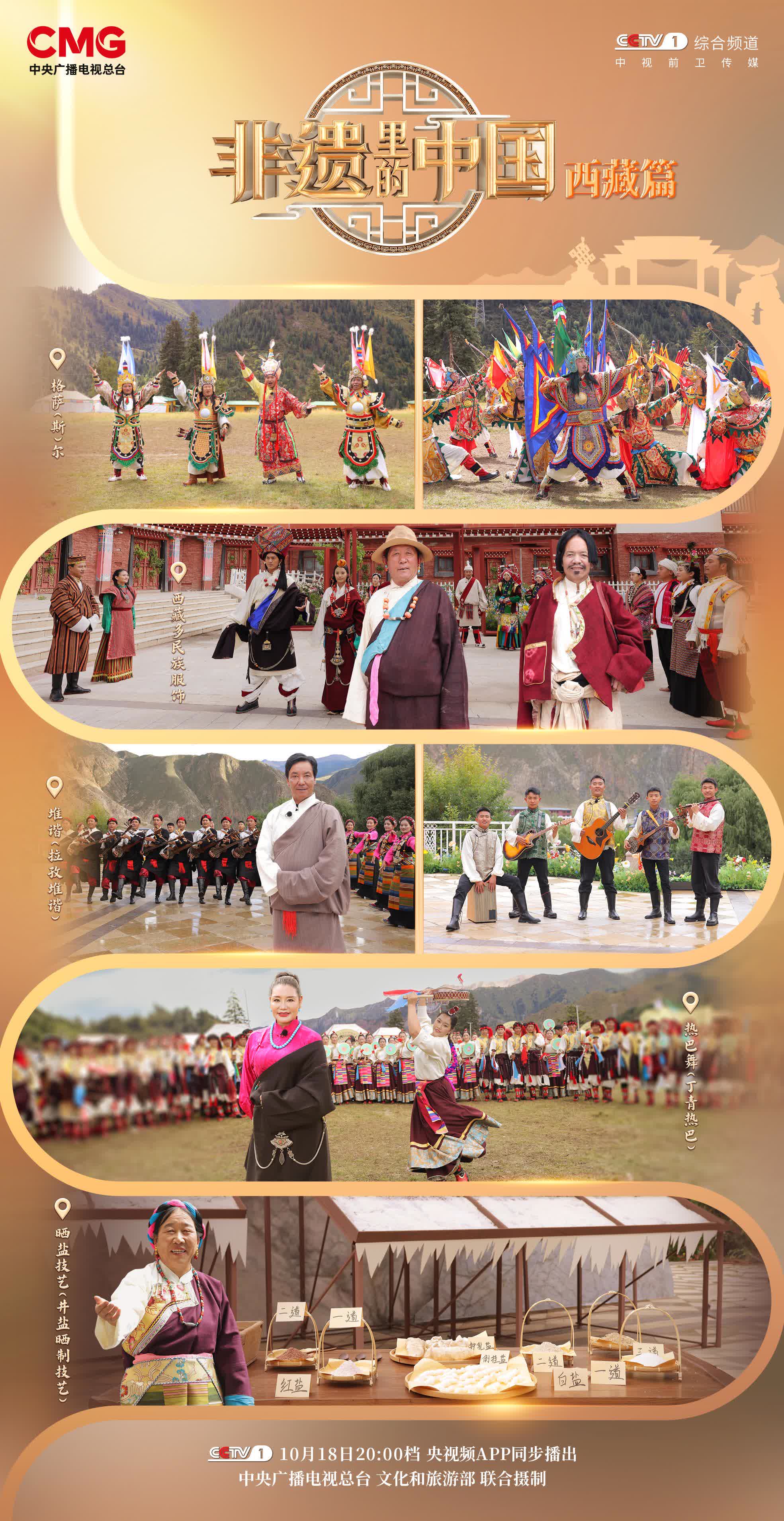 由中央廣播電視總台與文化和旅遊部聯合攝製的大型文化節目《非遺裏的中國》西藏篇將於10月18日20:00檔在總台綜合頻道(CCTV-1)播出,央視頻全網獨家首播。