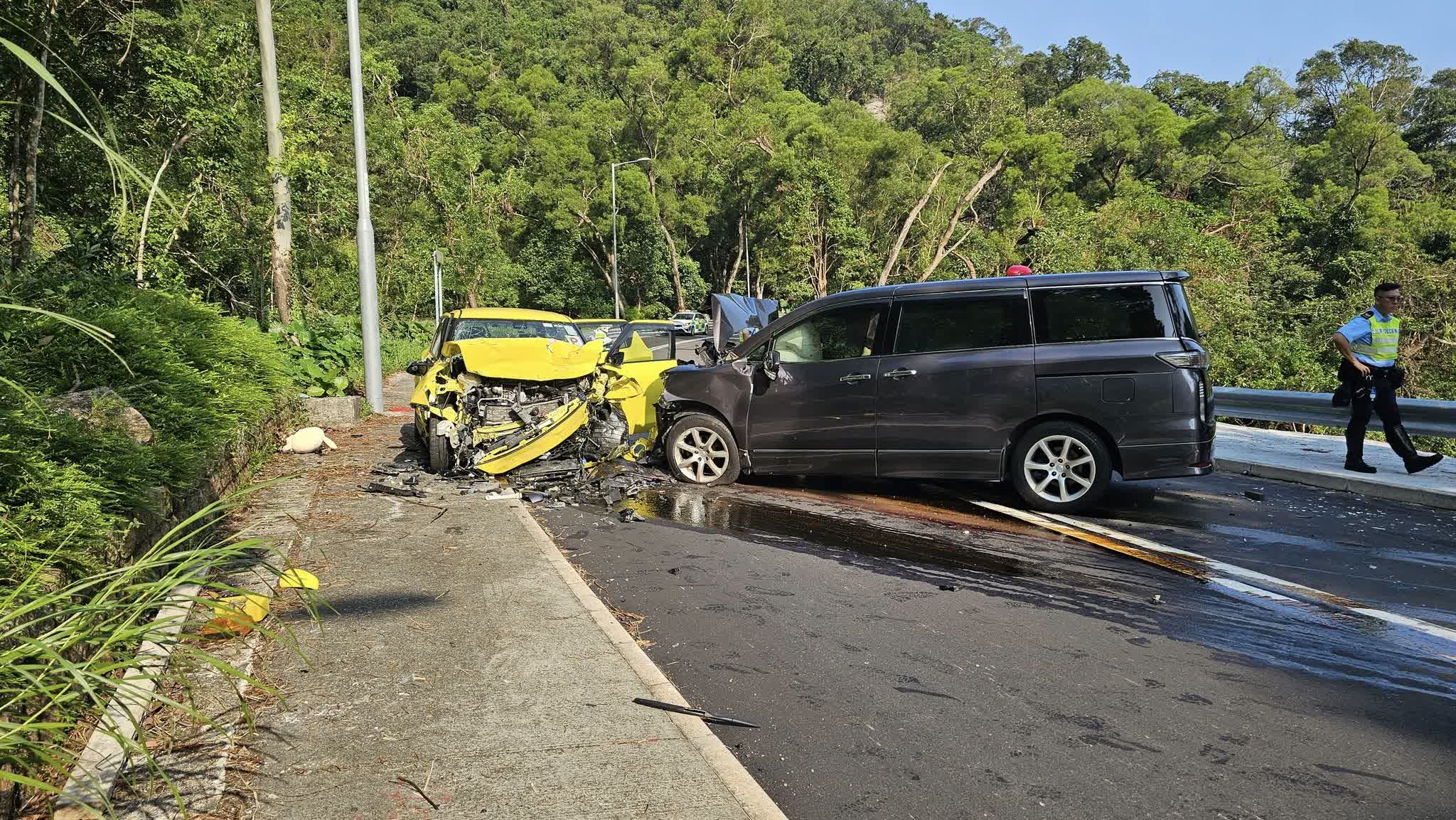 香港文匯報訊(記者 蕭景源)今早(19日)近8時,一輛掛有P牌的黃色私家車沿大埔新娘潭路往大埔方向行駛,當駛至涌尾一個彎位時,與一輛往鹿頸方向行駛的黑色七人車相撞,並波及另一輛灰色私家車。