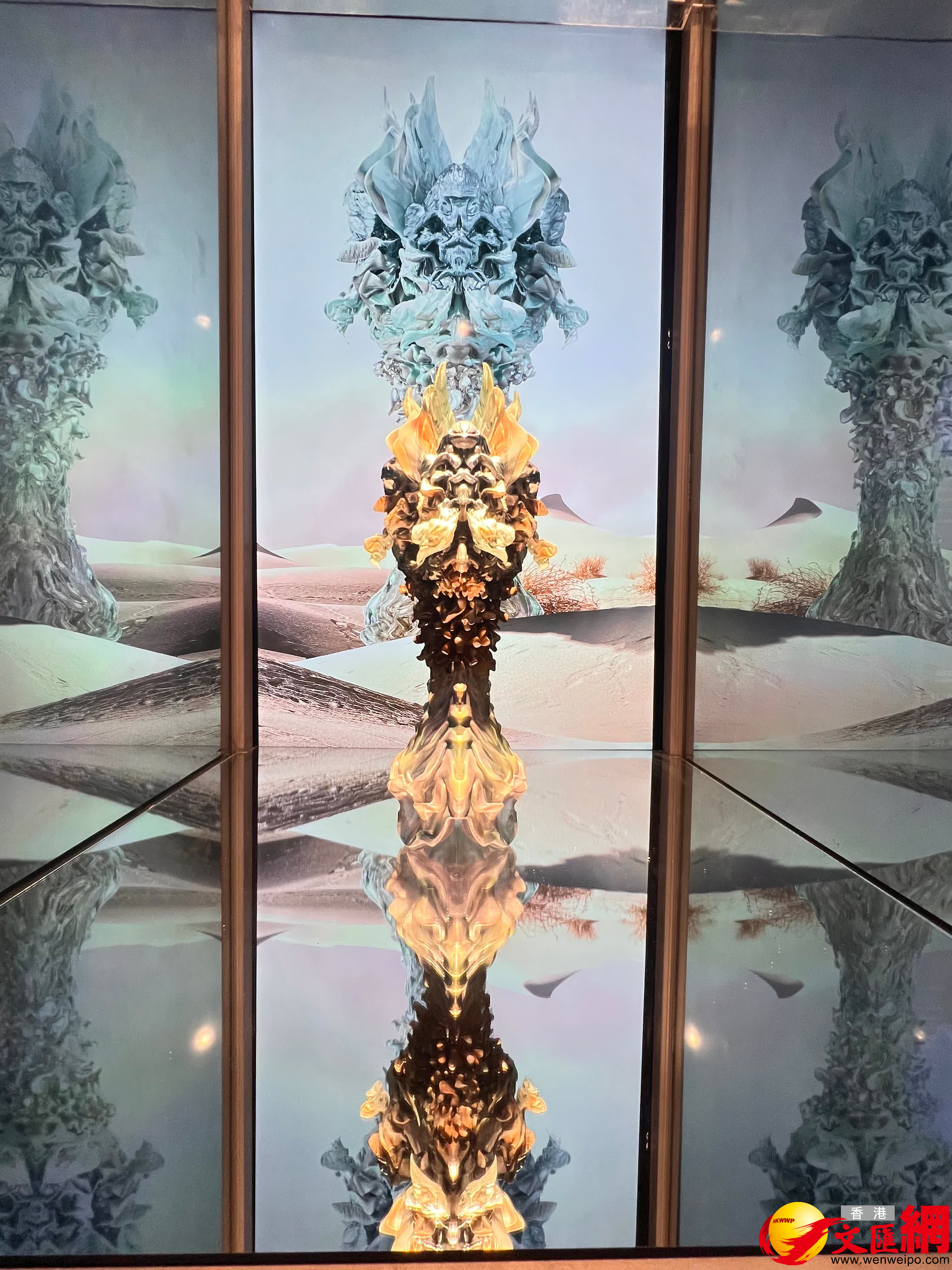 (香港文匯網記者王莉)良渚玉琮以數字化三維模式展現在電子屏上,融入中國篆文和羅盤元素的滴動儀不斷機械傳動;藉助深度學習算法生成視覺圖譜與神話形態的「算法神獸系統」……18日,中國(杭州)藝術與科技國際雙年展(以下簡稱:雙年展)在浙江杭州餘杭美術館啟幕。展覽將持續至12月18日。