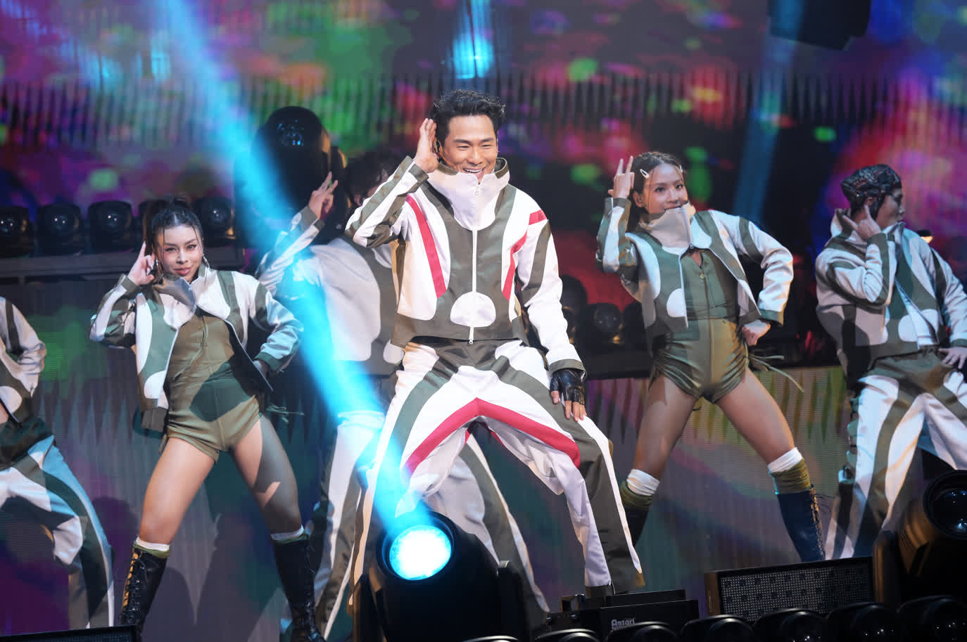 香港文匯報訊(記者 余雁)一連兩場的《杜德偉GET UP 世界巡迴演唱會- 香港站》昨晚在紅館舉行首場,相隔10年再登紅館,杜德偉(Alex)傾力跳足150分鐘,還請來30年「老朋友」林志穎擔任首場嘉賓神秘現身。而一眾圈中好友梁家輝夫婦、鍾鎮濤、曾志偉、邱淑貞、容祖兒等撐場,慶祝Alex入行四十周年。巨星成龍、梁朝偉、劉嘉玲、張學友、劉德華、郭富城等也送上花籃祝賀。