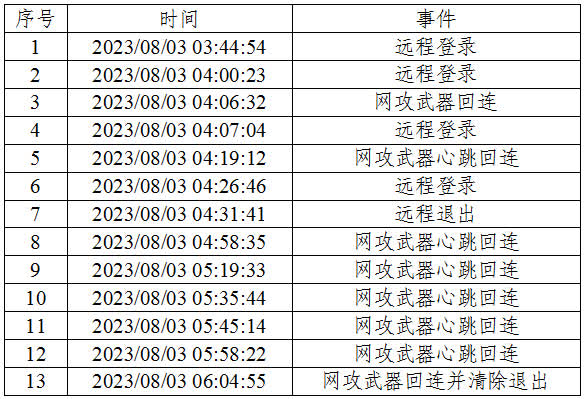 2023年4月11日至8月3日,攻擊者利用匿名通信網絡節點遠程登錄辦公計算機共80餘次,並以該計算機為據點探測授時中心網絡環境。
