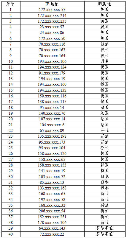 2023年8月至2024年5月,美方用於命令控制的部分服務器IP,如下表: