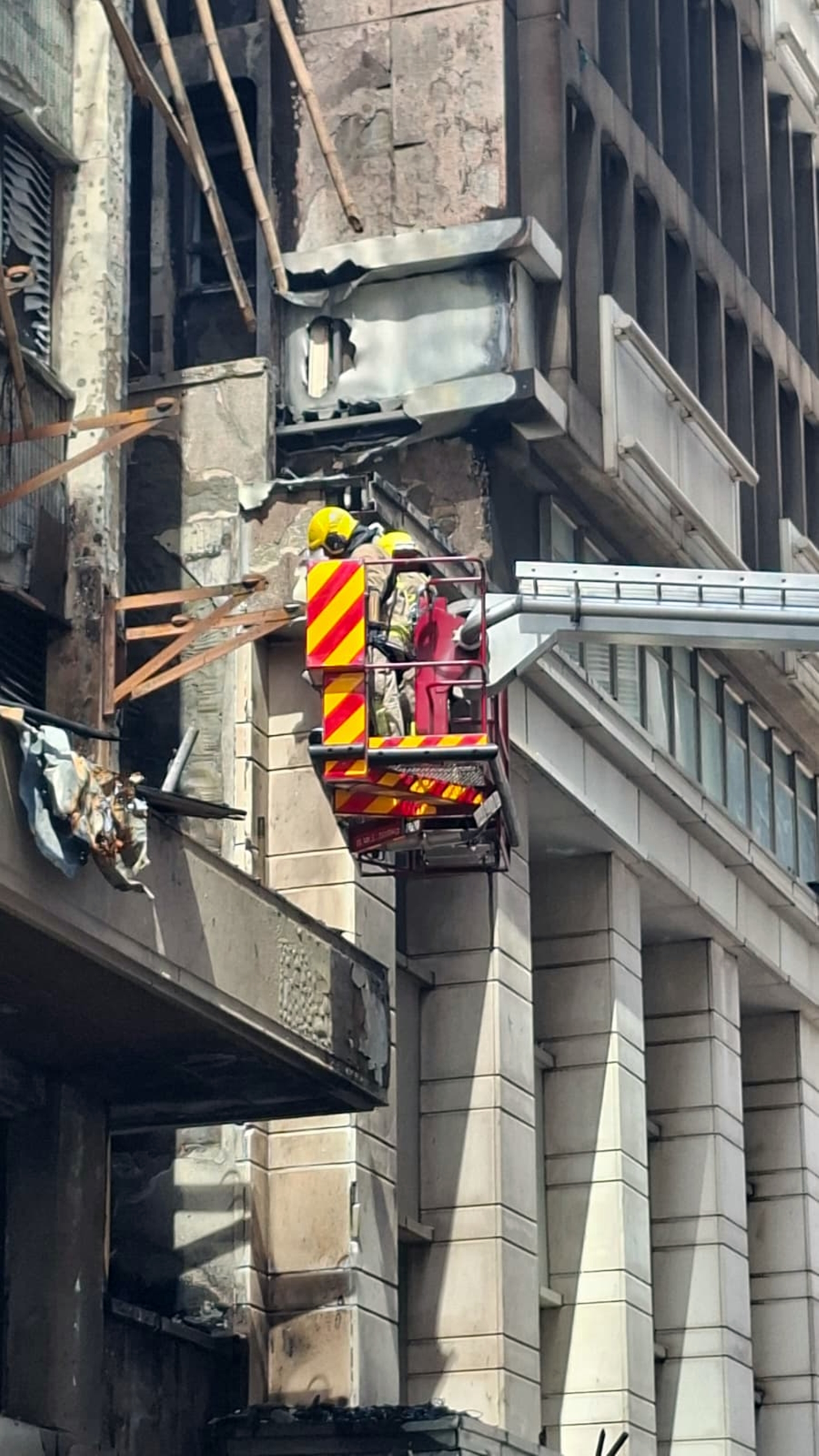 屋宇署指,昨日下午火警發生後,已即時聯絡大廈業主、工程項目的註冊建築專業人士及註冊承建商,並在火勢撲滅及取得消防處同意後,派員於當夜和今日早上聯同工程項目人員視察了大廈外內情況。初步認為大廈整體樓宇結構沒有明顯危險,但發現大廈外牆有一些鬆脫物需即時移除,包括已損毀的棚架、破損的外牆玻璃,以及鬆脫的外牆批盪等。