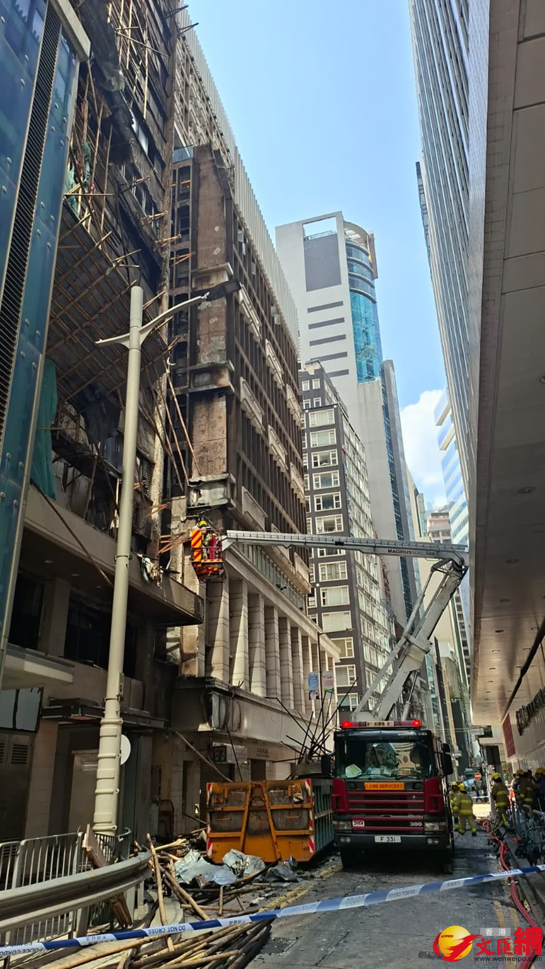 為安全起見,事故發生後,大廈業主及工程項目負責人昨日已主動暫停有關工程,而項目的註冊建築專業人士及註冊承建商亦已安排展開所需的清拆工作。屋宇署指,上址大廈外牆正透過「小型工程監管制度」進行外牆及空調機支架的修葺工程,而個別樓層正進行已獲屋宇署批准的加建及改建工程。就今次火警事故,署方正進行多方位調查,包括棚架所採用的保護網是否合規。