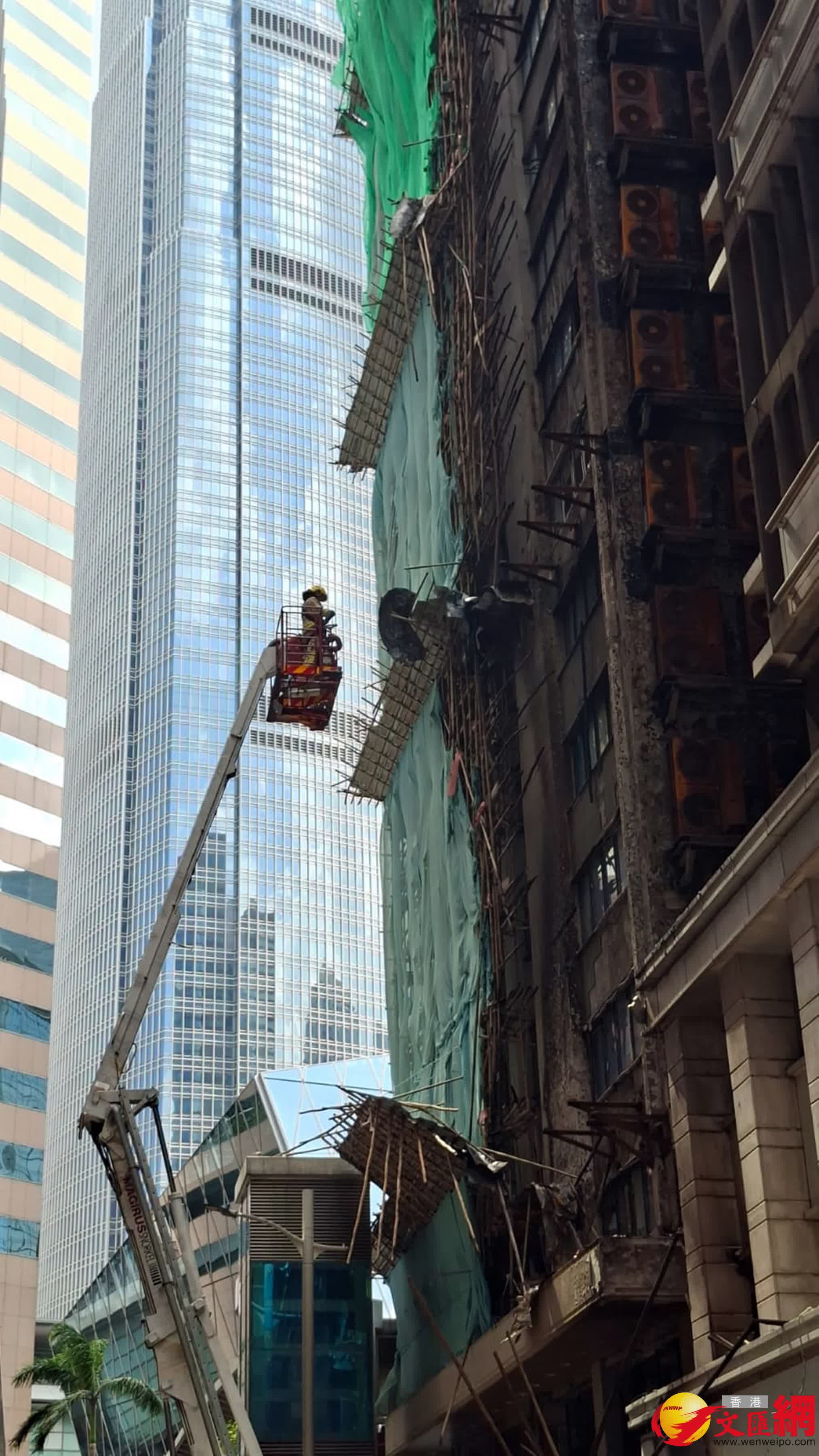 香港文匯報訊(記者 蕭景源)中環干諾道中華懋大廈昨日(18日)發生三級火,外牆多層大片棚架被焚,造成4人受傷送院,當中命危的姓倪(23歲)男傷者,今日(19日)晚上情況轉為嚴重,其餘2男1女(35至65歲)傷勢穩定。有專家指火勢猛烈及蔓延迅速,或與棚網並非由防燃物料製造有關。屋宇署則在昨夜和今早聯同工程項目人員視察了肇事大廈的外圍及內部情況後,認為樓宇結構無明顯危險,但將調查棚架所用的棚網(保護網)是否合規。