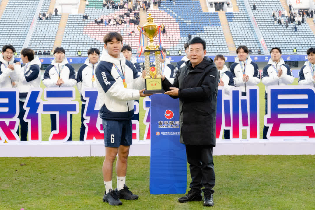 (香港文匯網記者 盧冶)10月19日,2025吉林銀行延邊州縣(市)足球聯賽(簡稱「延超」)落幕。吉林省延邊朝鮮族自治州延吉市代表隊在決賽中以2比0擊敗和龍市代表隊,奪得本屆賽事冠軍。吉林省委常委、延邊州委書記胡家福,延邊州人大常委會主任蔡紅星出席頒獎儀式活動。