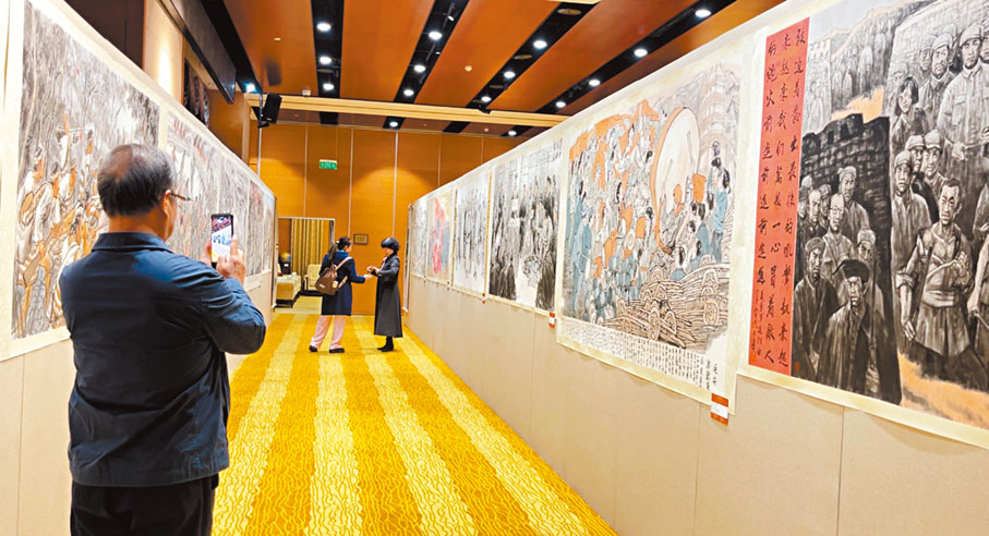 「這次活動最動人的部分,是兩岸藝術家在創作時相同的情感共鳴。」台盟中央兩岸書畫院常務副院長、台海出版社負責人竇為龍介紹,「本次展覽以詩書畫的形式立體再現了1895年至1945年間中國人民可歌可泣的抗戰歷程與不朽的民族精神,重要人物不缺,重要事件不漏,抗戰主流意識氛圍突出。」