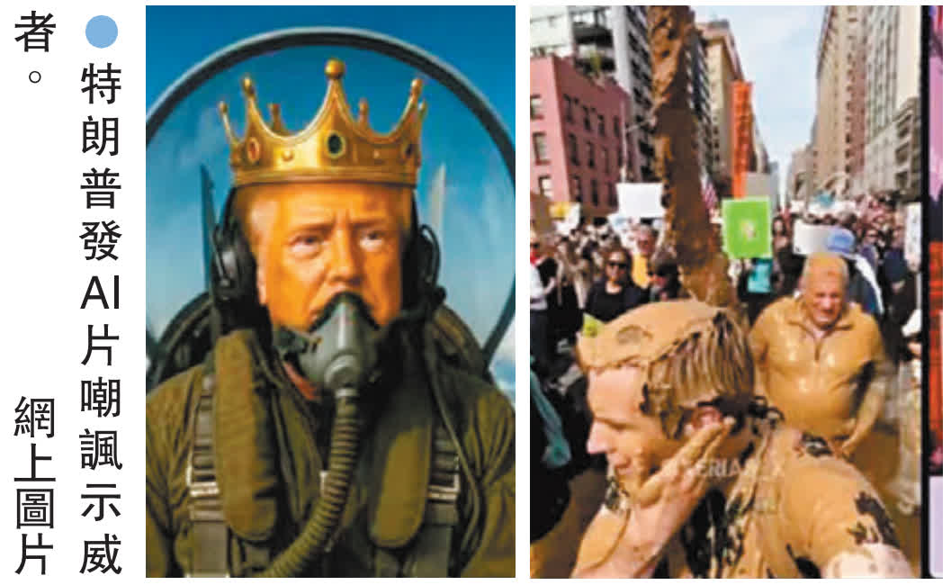 特朗普發AI片嘲諷 頭戴王冠向示威者潑屎水