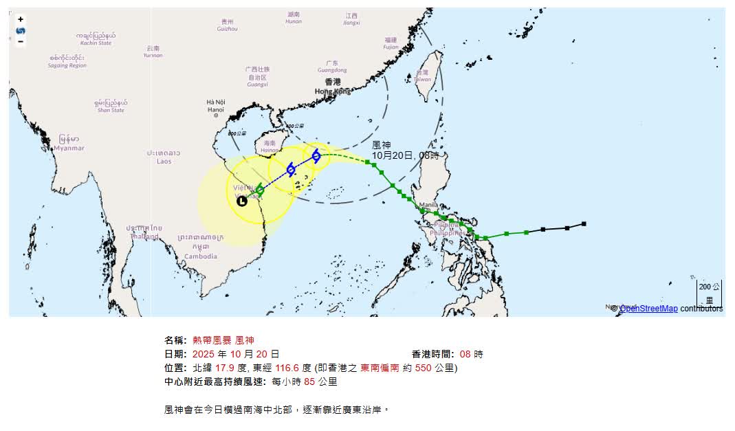 香港文匯報訊 隨著風神逐漸靠近廣東沿岸,天文台會在今日(20日)下午5時20分直接發出三號強風信號,取代強烈季候風信號。在風神及季候風的共同影響下,明日(21日)及星期三初時雨勢較為頻密,未來兩三日風勢持續頗大,市區氣溫顯著下降至19度左右,新界再低兩三度。