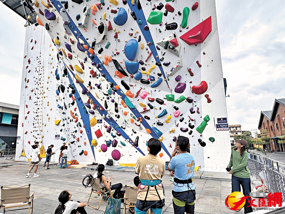 ●廣州普嵐攀岩館外的攀岩牆上,不少攀岩愛好者正在挑戰。(香港文匯報記者 盧靜怡 攝)