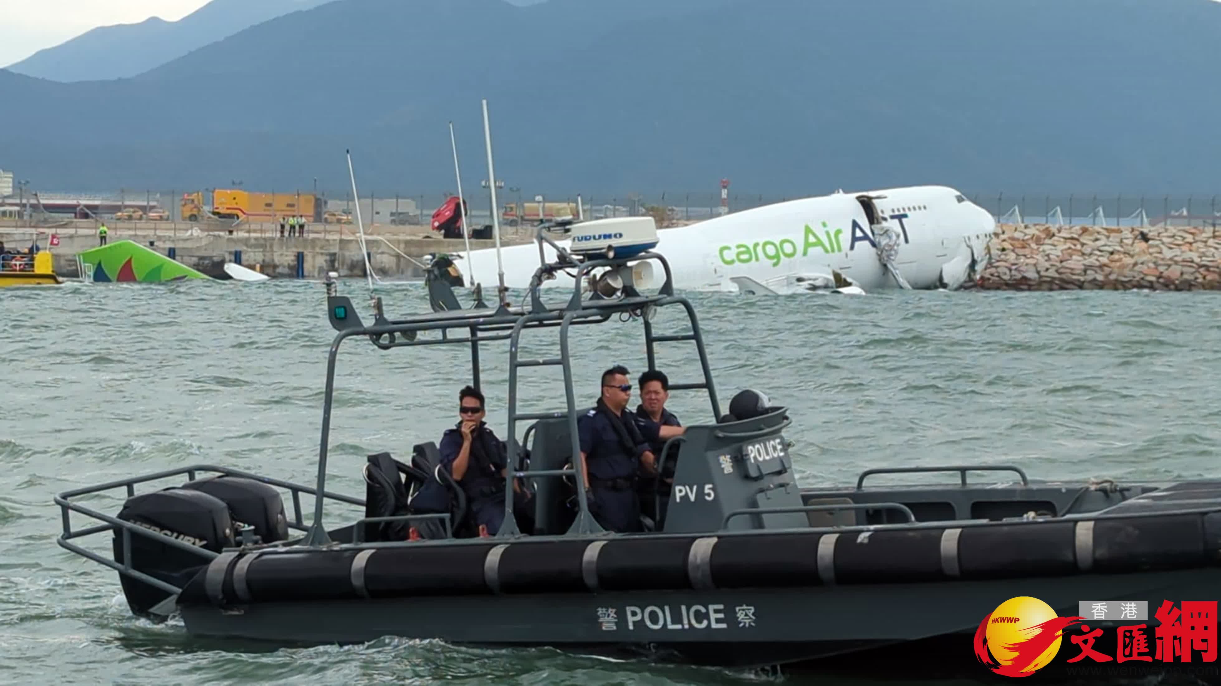 香港文匯報訊(記者 蕭景源)一架由阿聯酋阿勒馬克圖姆國際機場抵港的B744貨機(航班編號UAE9788),今日(20日)凌晨約3時50分飛抵香港國際機場,貨機在降落機場北跑時滑出跑道,繼而撞毀鐵絲網墮入海中;當時機場保安公司一輛巡邏車在上述位置,被飛機撞至墮海。事故發生後,機管局即時啟動機場應變中心,消防人員迅速趕至現場將貨機上4名機組人員救出送院;隨後,消防員亦在水底將被撞落海的巡邏車內,救出兩名機場保安公司員工,兩人分別在現場及送院後證實死亡。
