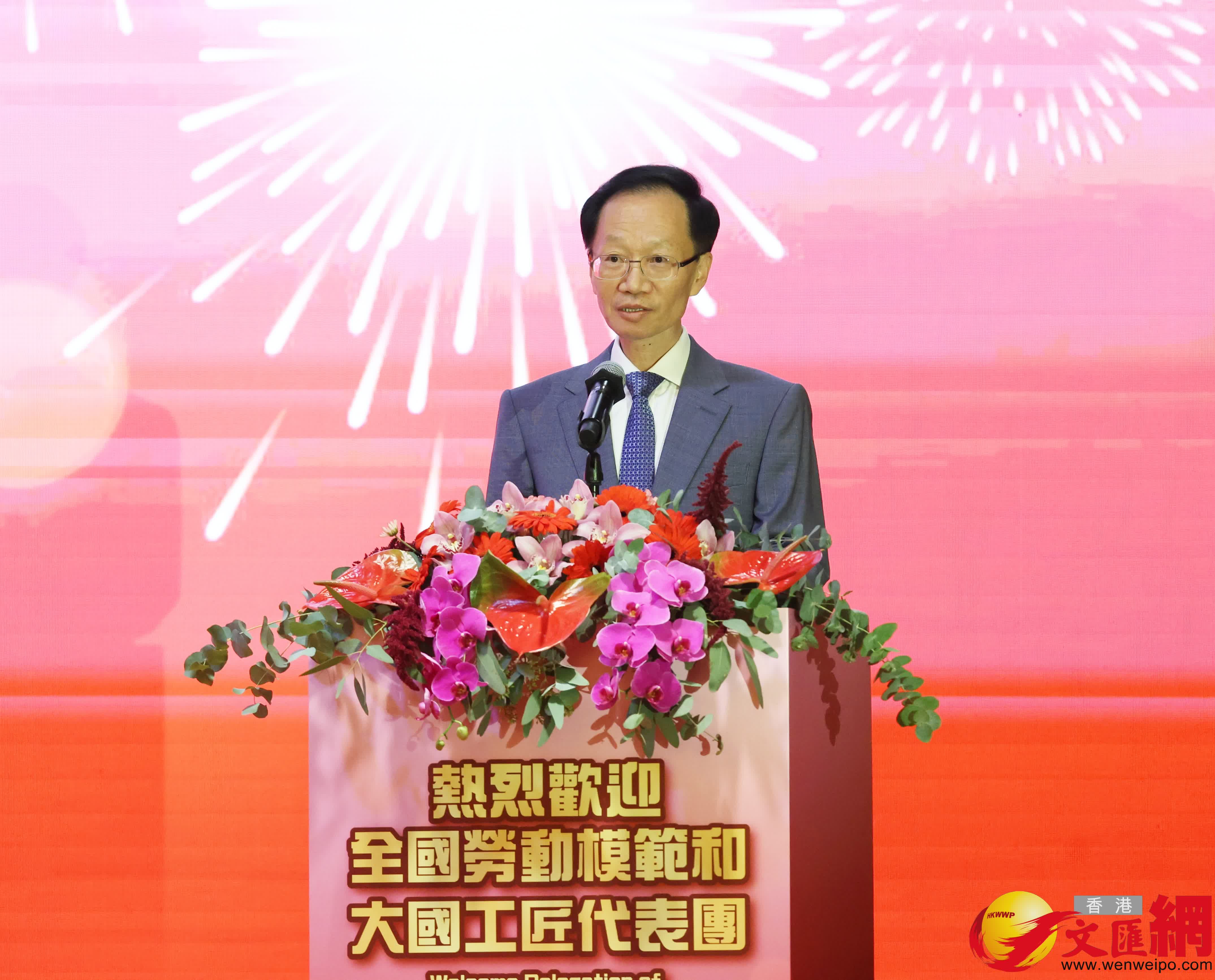 香港特區政府今日下午在灣仔香港君悅酒店為代表團舉行歡迎儀式。代表團由中華全國總工會副主席魏地春率領,成員包括7名來自不同領域的全國勞動模範和大國工匠。