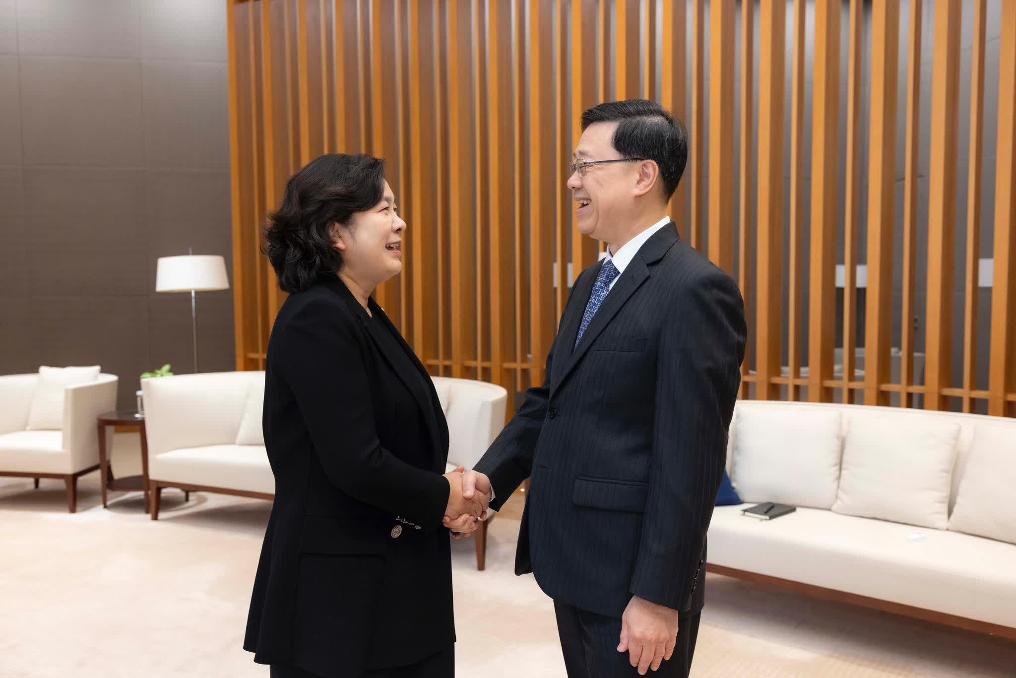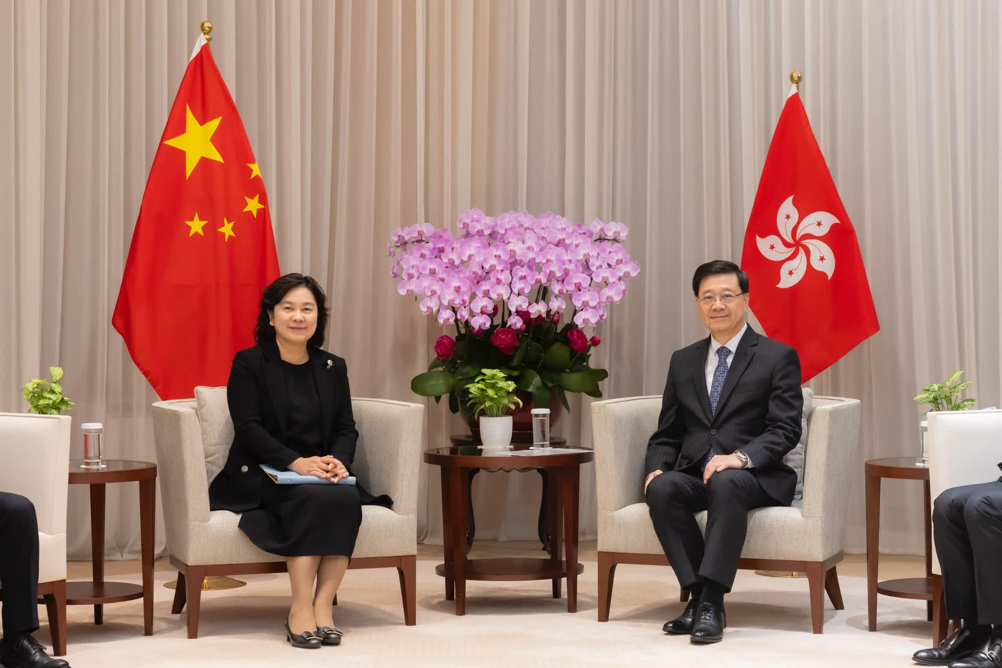 下午,李家超在律政司司長林定國陪同下,與到港出席國際調解院開業儀式的外交部副部長華春瑩會面。李家超強調,代表特區政府歡迎華副部長訪港,並表示很欣喜看見在中央政府的大力支持下,香港特區可擔當如此重要的角色,讓首個及唯一一個專門以調解方式解決國際爭議的政府間國際組織正式落戶香港,與設於海牙、專門以其他方式解決爭議的聯合國國際法院和常設仲裁法院看齊。