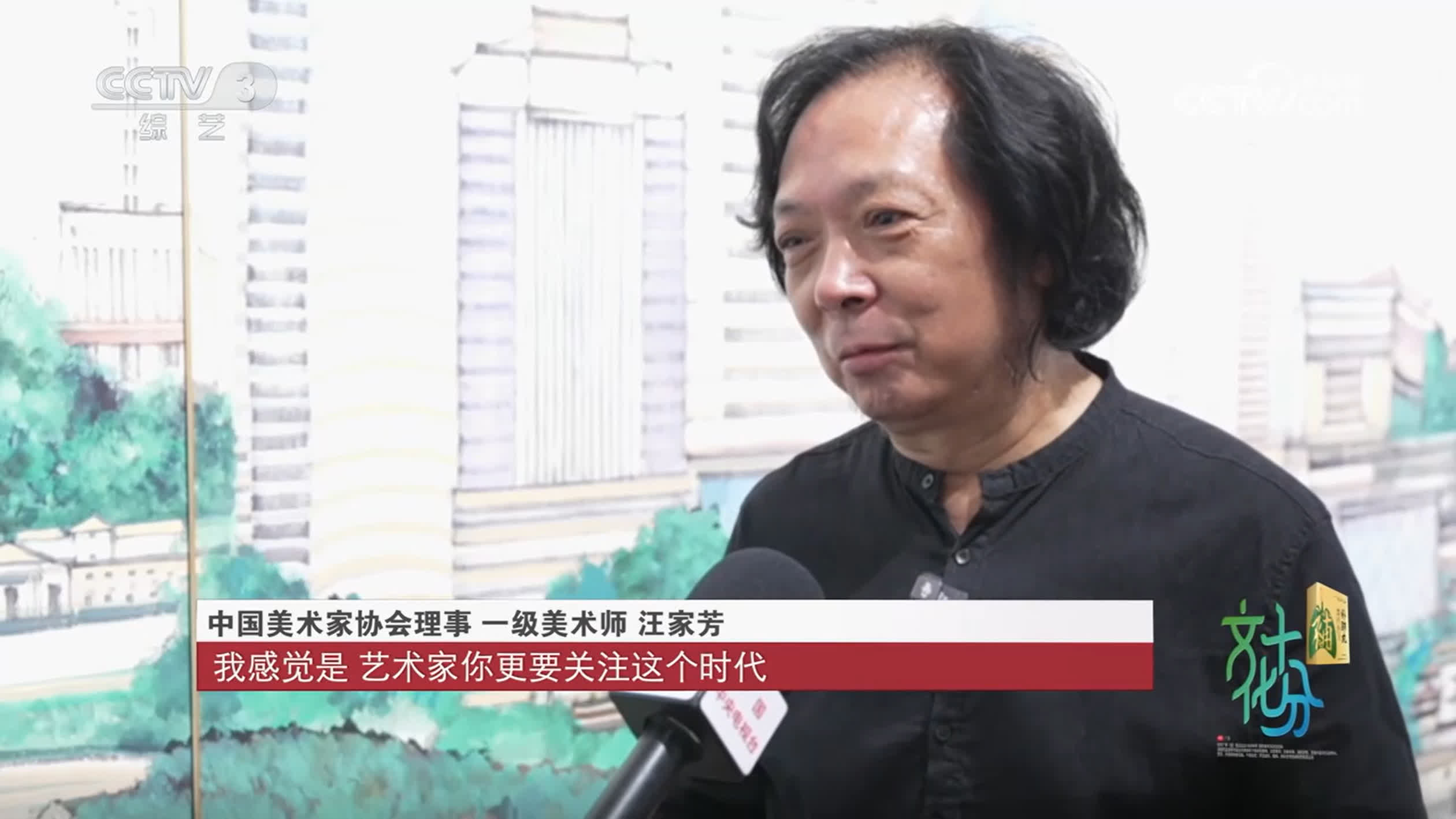 中國美術家協會理事 一級美術師 汪家芳:為什麼要叫行觀?我感覺是,藝術家你更要關注這個時代,每天都在發展,每天都在更迭。我感覺應該用山水畫來體現城市山水的精神,所以我後來就把城市作為(承載)山水精神(的)一種載體。