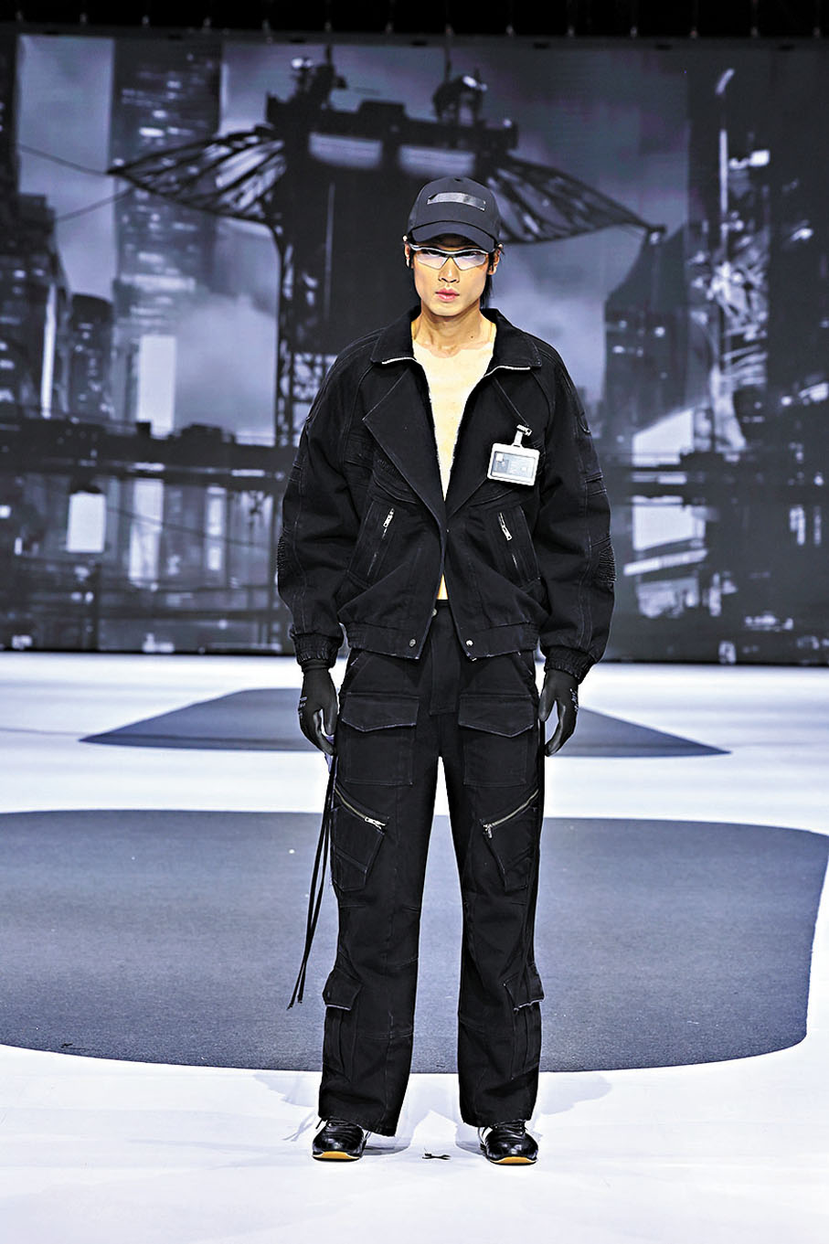 於2022年創立個人品牌IP AXIS INDUSTRIAL STUDIO的香港年輕時裝設計師Max Tsang,2023年首次登上CENTRESTAGE,今年再度參展並首次以Fashion Hong Kong名義亮相。他選擇落戶大灣區中山,利用便利的交通及布料資源,兼顧創作與成本之間的平衡,讓大眾能穿上其設計的作品,感受背後的故事與理念。其品牌定位獨特,靈感來自城市與郊外生活的交錯,藉由虛擬角色與故事構築出完整世界觀。