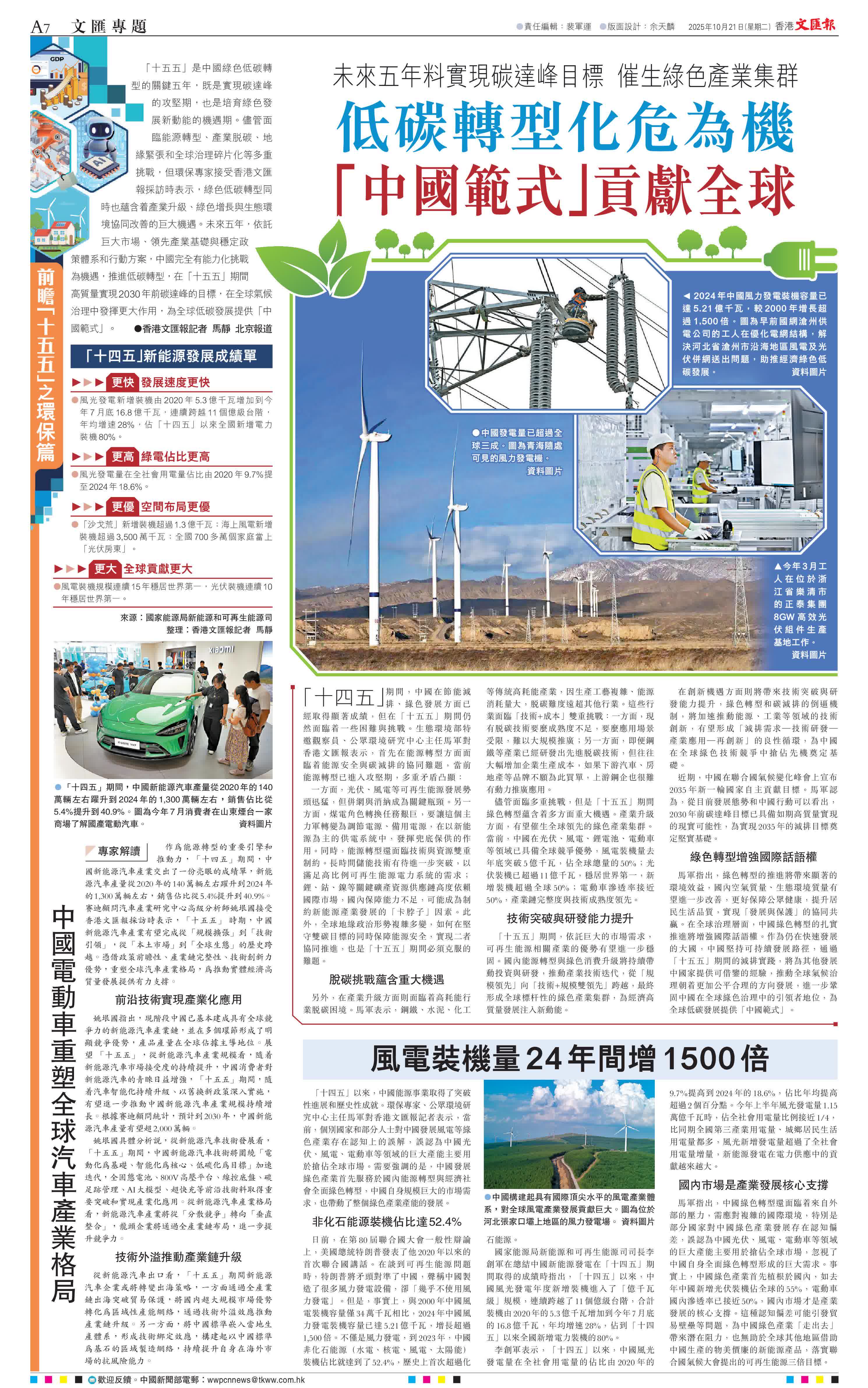 「十四五」以來,中國能源事業取得了突破性進展和歷史性成就。環保專家、公眾環境研究中心主任馬軍對香港文匯報記者表示,當前,個別國家和部分人士對中國發展風電等綠色產業存在認知上的誤解,誤認為中國光伏、風電、電動車等領域的巨大產能主要用於搶佔全球市場。需要強調的是,中國發展綠色產業首先服務於國內能源轉型與經濟社會全面綠色轉型,中國自身規模巨大的市場需求,也帶動了整個綠色產業產能的發展。