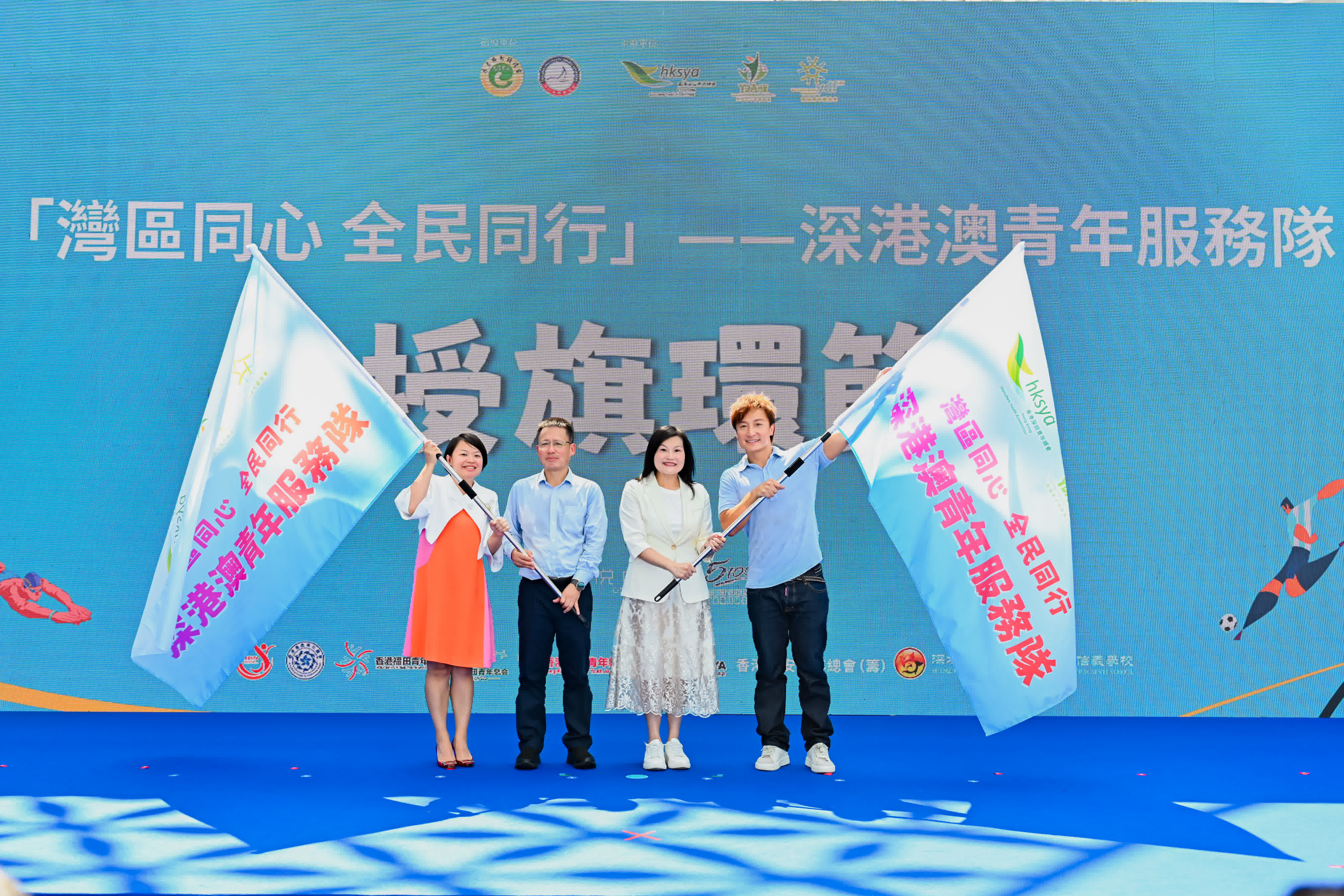 開幕式上,與會嘉賓共同為嘉年華揭幕。隨後,「灣區同心·全民同行」深港澳青年服務隊授旗環節將現場氛圍推向高潮。服務隊接過象徵責任與使命的旗幟,正式成為十五運的港澳青年服務大使。該服務隊由香港深圳青年總會聯動深圳各區港澳青年代表共同組成,將以十五運為契機,圍繞「推介、融合、共創」三大方向,着力打造一個開放、互動、共享的青年交流平台,推動深港澳青年在文化、體育、公益等領域的深度合作,積極推介傳遞十五運精神,積極參與十五運志願服務工作。