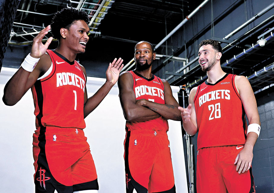 新一季NBA將於香港時間今日(22日)早上展開,應屆總冠軍雷霆今夏成功與三大年輕主力續約,勢必希望成功衛冕達成連霸美夢。然而,雷霆今夏預計會遇到多支西岸勁旅的挑戰,其中今夏積極招兵買馬的火箭、上屆殺入西岸決賽的木狼、由祖傑和李奧拿德分別領導的金塊和快艇,相信均會是雷霆最大的挑戰者。●香港文匯報記者 楊浩然