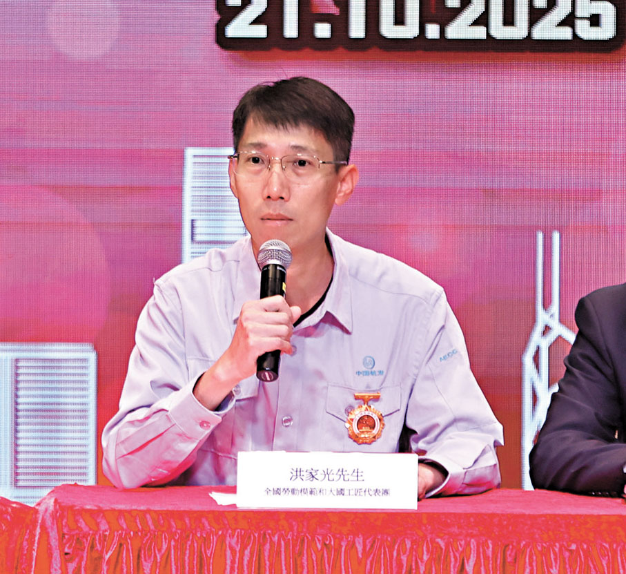 交流環節分兩部分,先由人工智能領域的段江南和文化藝術領域的楊俊兩位勞模代表,與香港工聯會行業模範之星得獎者對話,其中得獎者陳家潢介紹指自己深耕鐘錶製作45年,剛開始當學徒時從錶殼外觀做起,其間不斷到瑞士深造,鑽研精密工藝,整個過程經歷很多困難,但多年來他堅持不懈,形容「世上無難事,只要有心人」,並期望盡努力培養更多年輕人。他並表示曾被質疑在研發上投入太多金錢是否值得,但認為把設計概念實現的那一刻很感動,推動自己一直做下去。