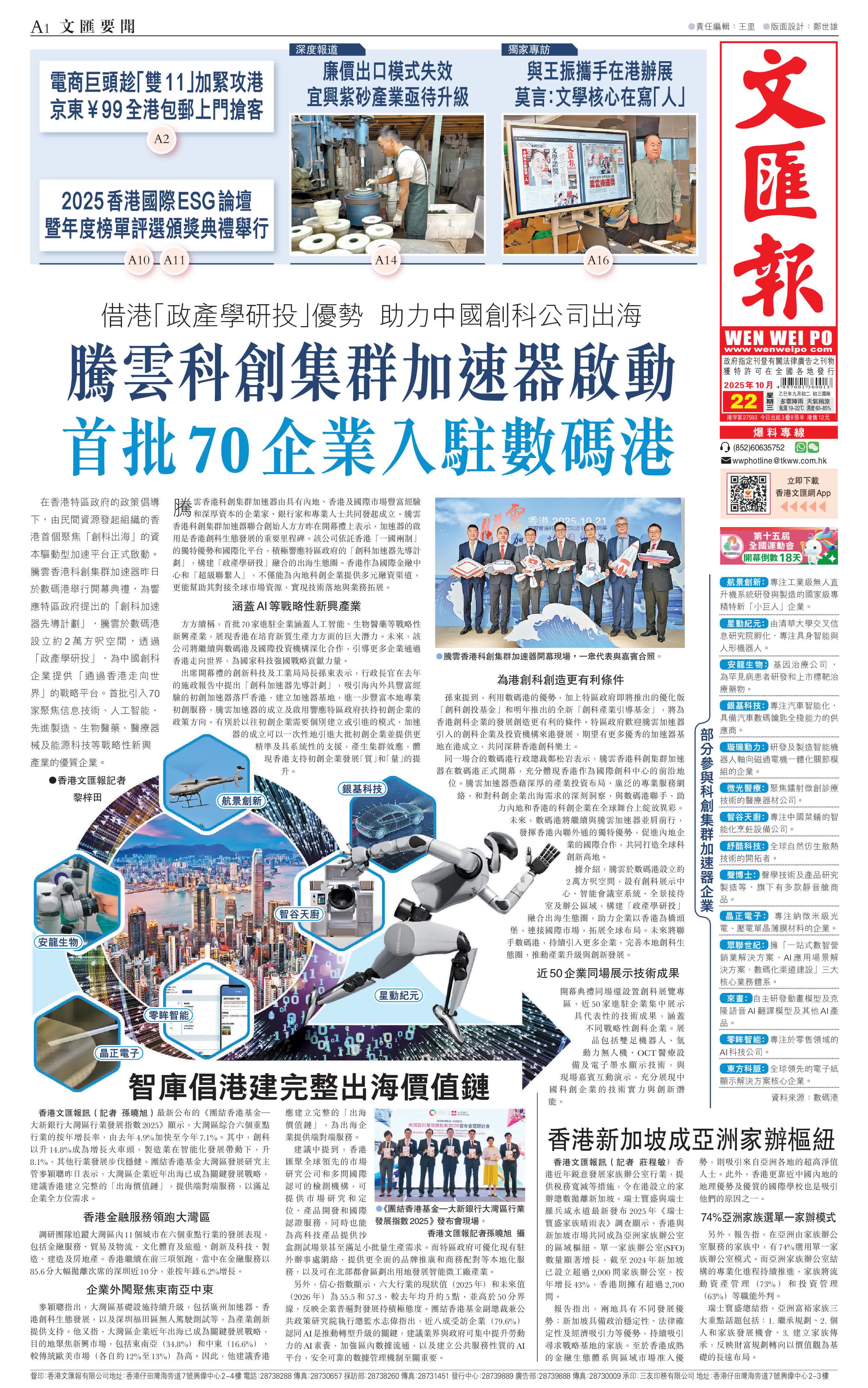 據介紹,騰雲於數碼港設立約2萬方呎空間,設有創科展示中心、智能會議室系統、全景接待室及辦公區域,構建「政產學研投」融合出海生態圈,助力企業以香港為橋頭堡,連接國際市場,拓展全球布局。未來將聯手數碼港,持續引入更多企業,完善本地創科生態圈,推動產業升級與創新發展。