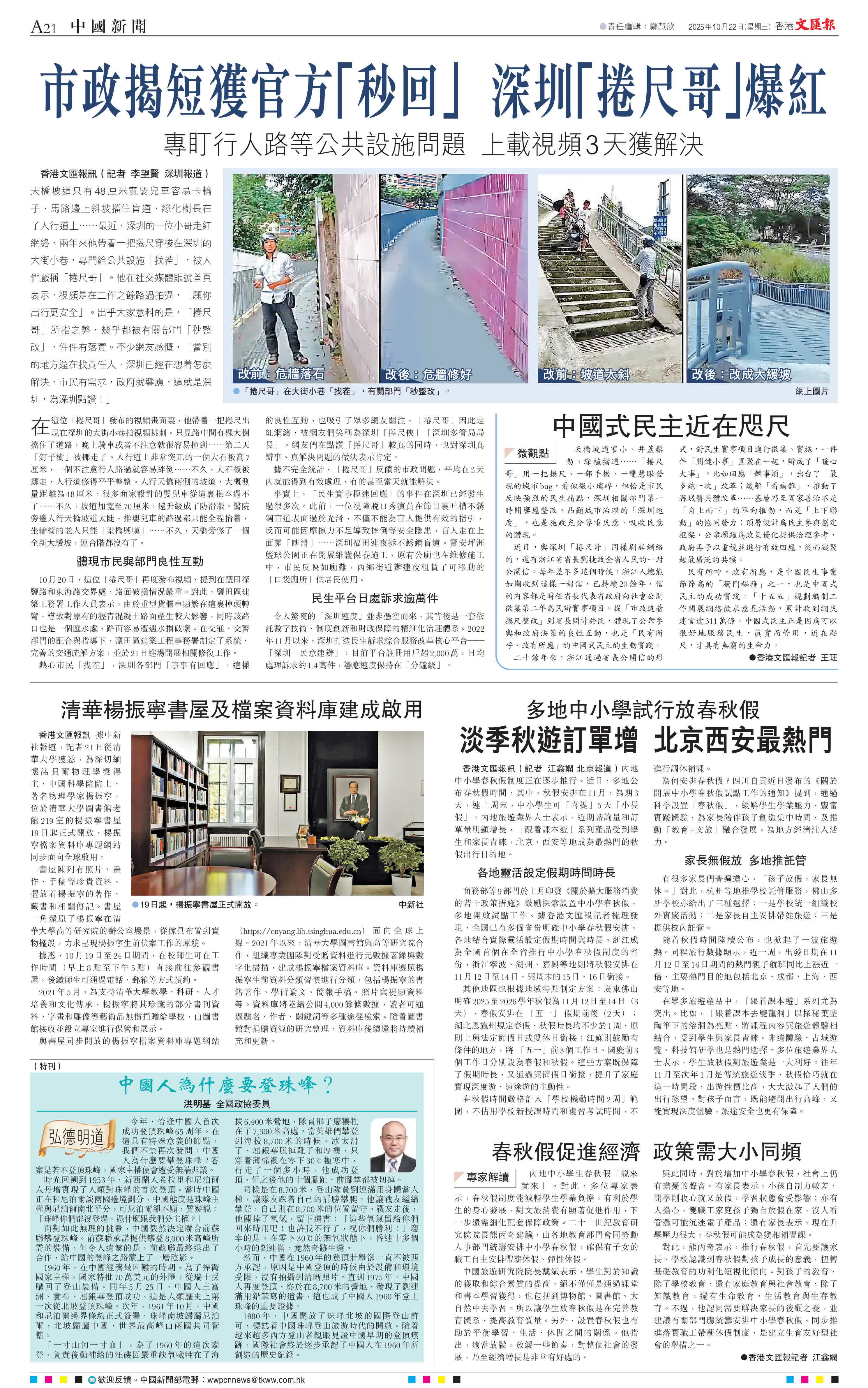 香港文匯報訊(記者 李望賢 深圳報道)天橋坡道只有48厘米寬嬰兒車容易卡輪子、馬路邊上斜坡擋住盲道、綠化樹長在了人行道上……最近,深圳的一位小哥走紅網絡,兩年來他帶着一把捲尺穿梭在深圳的大街小巷,專門給公共設施「找茬」,被人們戲稱「捲尺哥」。他在社交媒體賬號首頁表示,視頻是在工作之餘路過拍攝,「願你出行更安全」。出乎大家意料的是,「捲尺哥」所指之弊,幾乎都被有關部門「秒整改」,件件有落實。不少網友感慨,「當別的地方還在找責任人,深圳已經在想着怎麼解決,市民有需求,政府就響應,這就是深圳,為深圳點讚!」