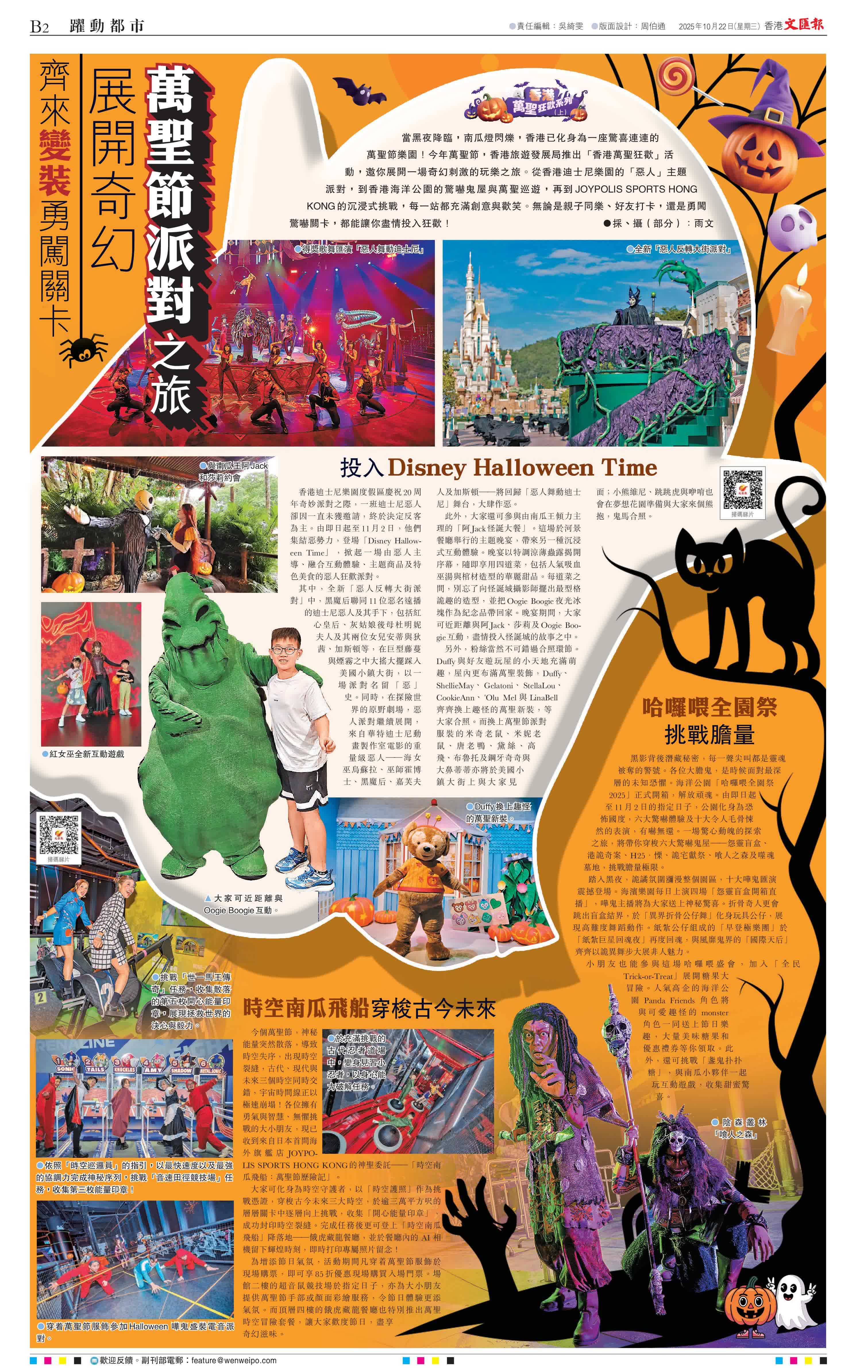 (香港文匯報記者 雨文)當黑夜降臨,南瓜燈閃爍,香港已化身為一座驚喜連連的萬聖節樂園!今年萬聖節,香港旅遊發展局推出「香港萬聖狂歡」活動,邀你展開一場奇幻刺激的玩樂之旅。從香港迪士尼樂園的「惡人」主題派對,到香港海洋公園的驚嚇鬼屋與萬聖巡遊,再到JOYPOLIS SPORTS HONG KONG的沉浸式挑戰,每一站都充滿創意與歡笑。無論是親子同樂、好友打卡,還是勇闖驚嚇關卡,都能讓你盡情投入狂歡!