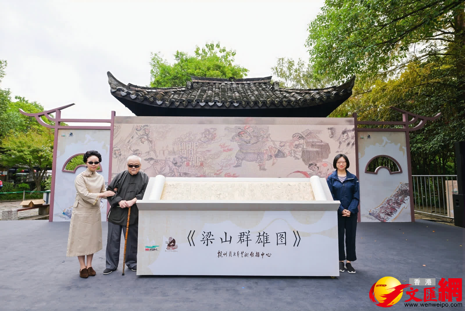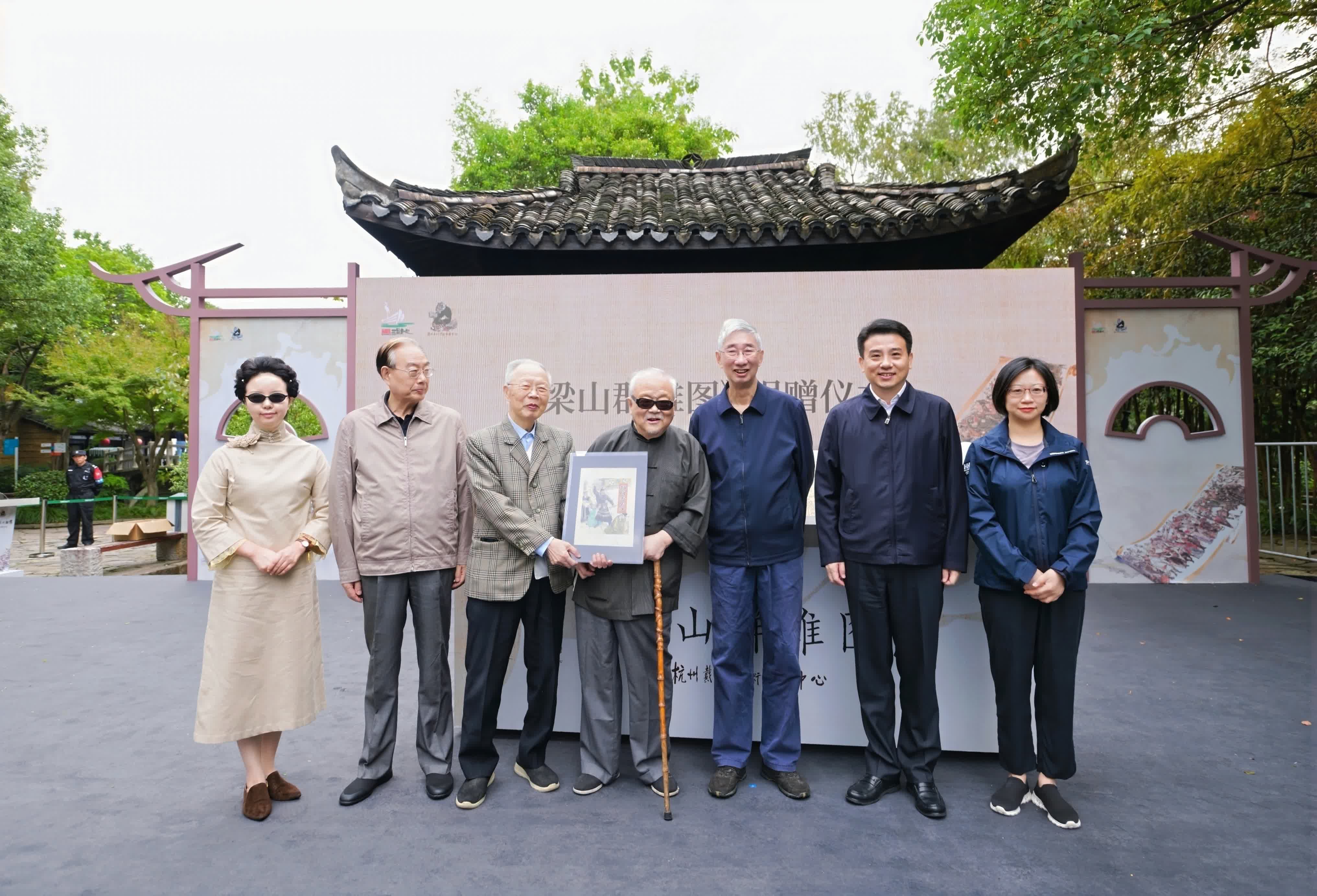 戴敦邦現場向西湖區政府捐贈了其與知名工筆畫家、入室關門弟子程澄的合作作品———三十七米長手卷《梁山群雄圖》,以精妙翰墨與傳承精神致敬杭城,以經典賡續西湖文脈。隨着啟動開幕裝置的緩緩開啟,戴敦邦藝術傳播中心正式對公眾開放。戴敦邦藝術傳播中心的落地,將畫壇巨匠戴敦邦的古典文學繪畫藝術與西溪濕地的歷史文脈深度融合,為杭州再添一座傳承中華優秀傳統文化的重要地標。