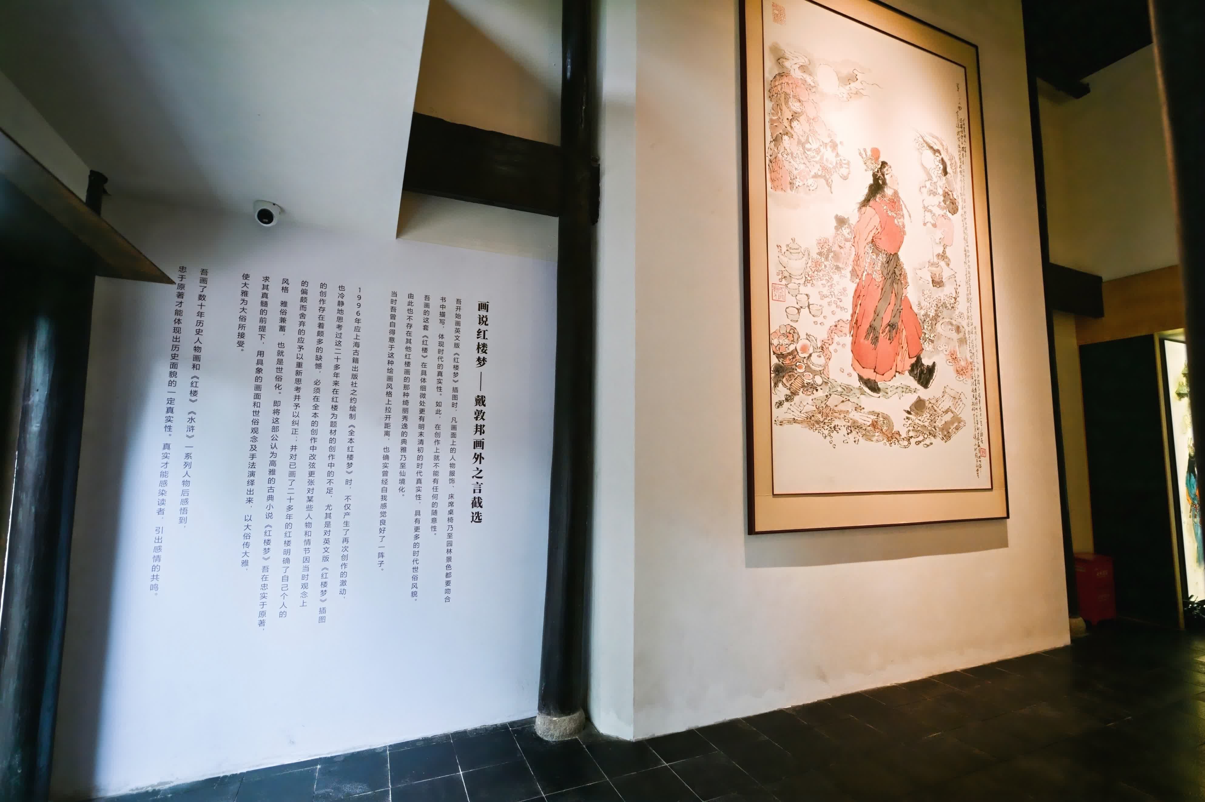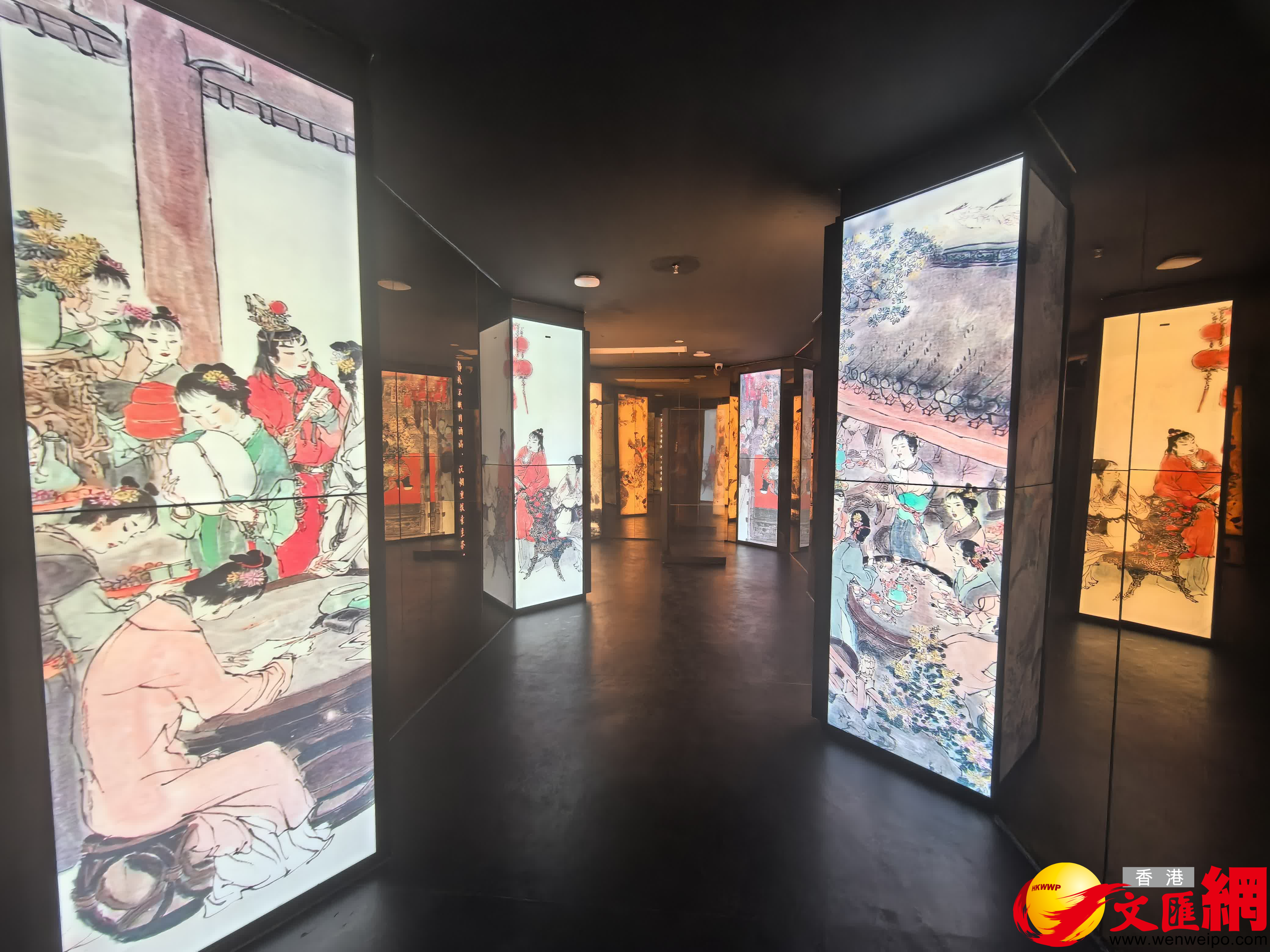 在水滸忠義廳,《水滸傳》中的經典畫面極具故事性和藝術性,水滸一百零八將畫像更是神態鮮活,盡顯戴老先生「畫水滸第一人」的精湛深邃功底;大觀紅樓廳,結合十里清波水路、「秋蘆飛雪」景致的原型解讀,讓觀眾讀懂讀透西溪的紅樓印記,通過紅外感應、傳統水墨藝術與動態數字融合等技術,觀眾可直觀感受到《紅樓夢》中「太虛幻境」等經典畫面,了解戴老筆下《紅樓夢》人物群像。