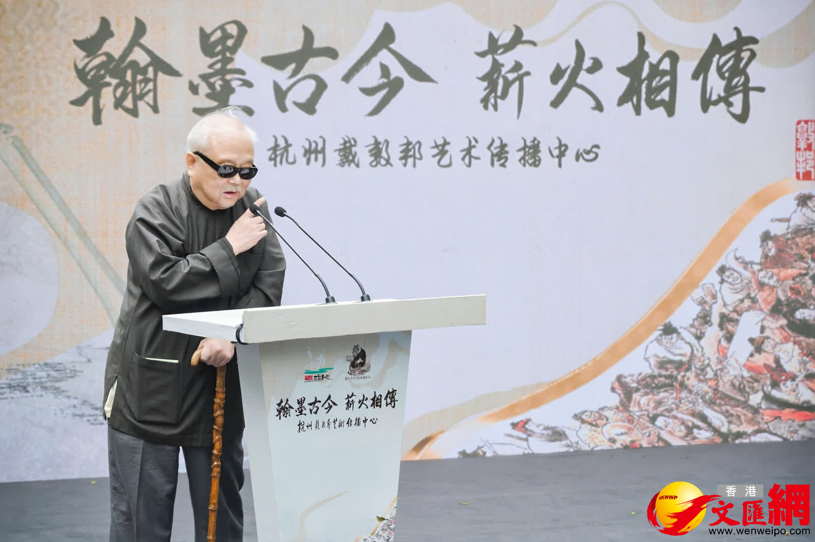 (香港文匯網記者 茅建興 杭州報道)金秋十月,丹桂飄香。杭州戴敦邦藝術傳播中心19日在杭州西溪濕地開幕。當天西溪濕地深潭口嘉賓雲集,當代畫壇大家、年近九旬的戴敦邦,與來自全國各地文藝學術界人士齊聚現場,共同見證這一重要的文化時刻。