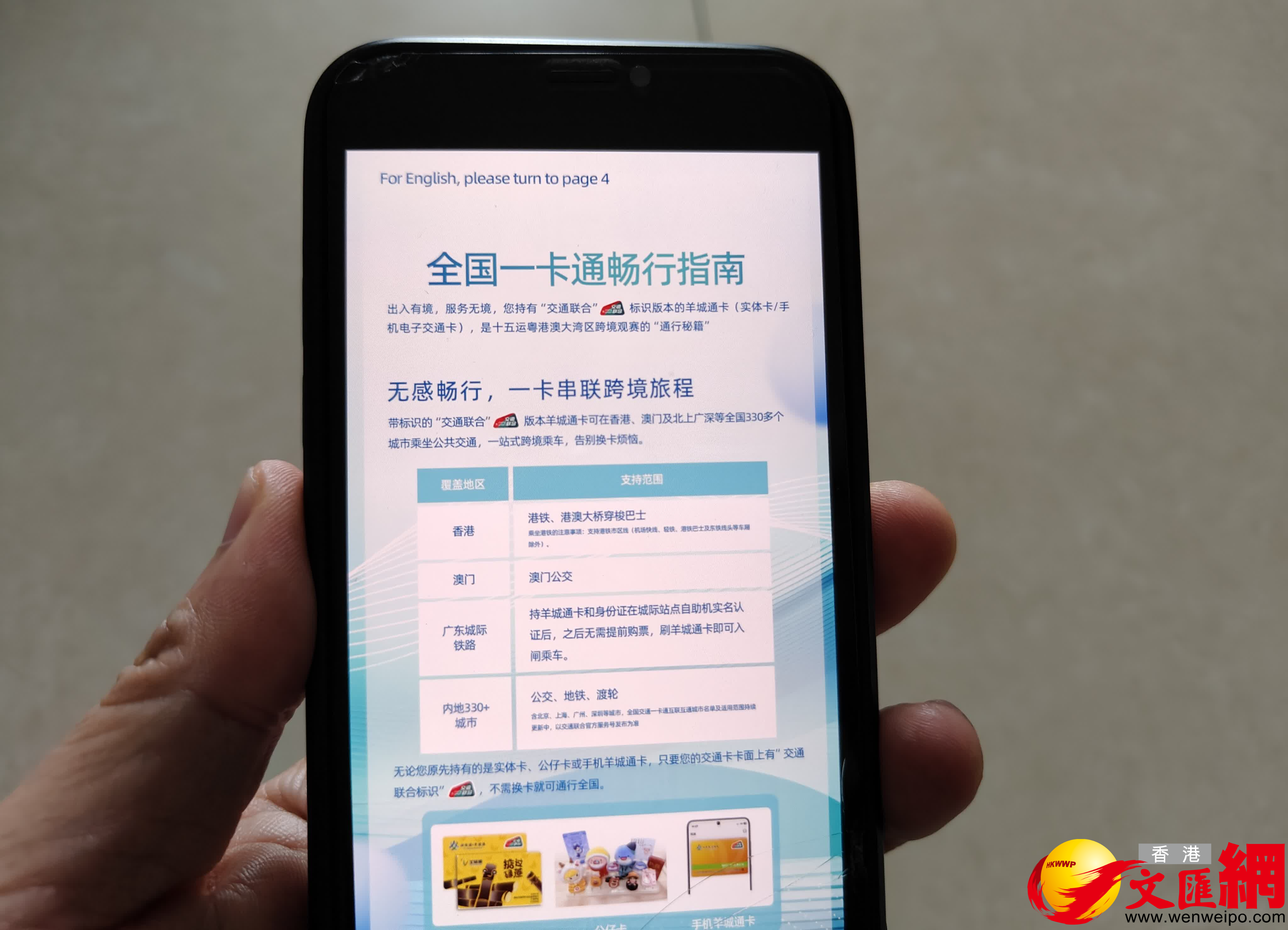 (香港文匯網記者 方俊明)為助力十五運會期間人員出行,提升跨境旅客出行觀賽體驗,《全國一卡通暢行指南》中英文雙語手冊正式發布。廣州羊城通有限公司今天(22日)表示,該手冊以「一卡通行港澳 暢遊全國」為核心,為境內外旅客提供系統、清晰的出行指引。