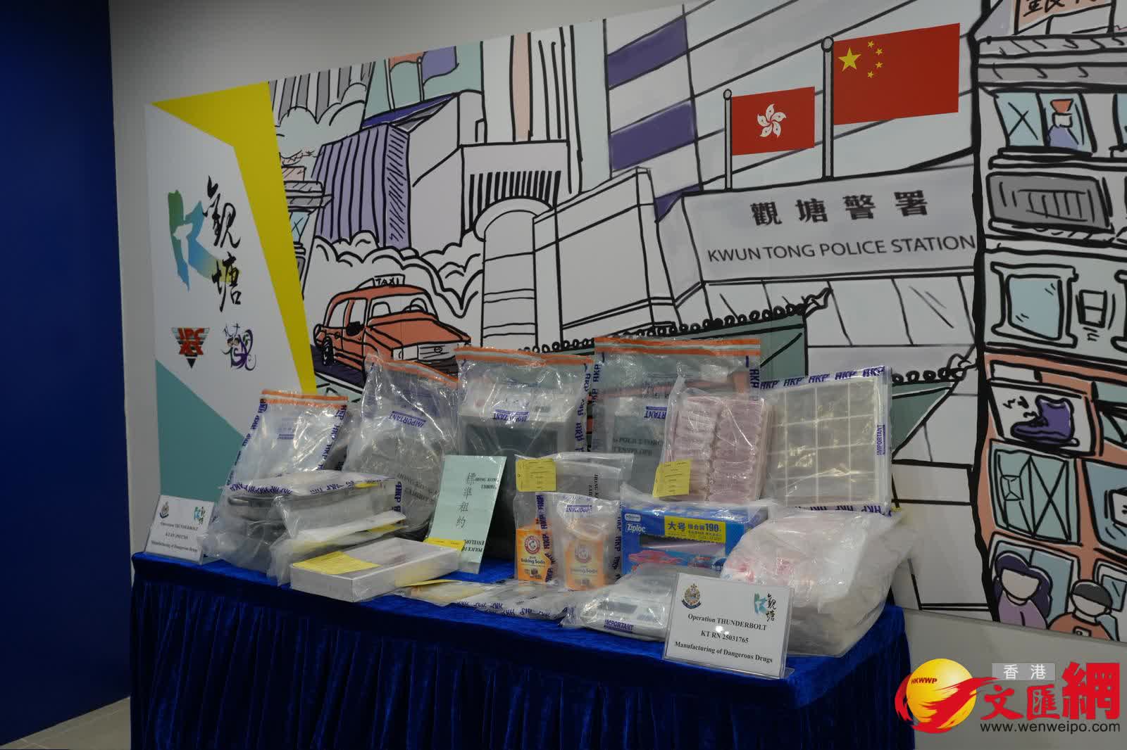 觀塘警區反三合會行動組督察梁普恩今日(22日)講述案情時表示,警方早前經情報分析及深入調查,鎖定有販毒集團利用觀塘區住宅單位作製毒工場,企圖利用民居作掩飾,擾亂警方調查方向及偵查難度,以及方便將毒品分銷到東九龍區,當中主要為觀塘區。