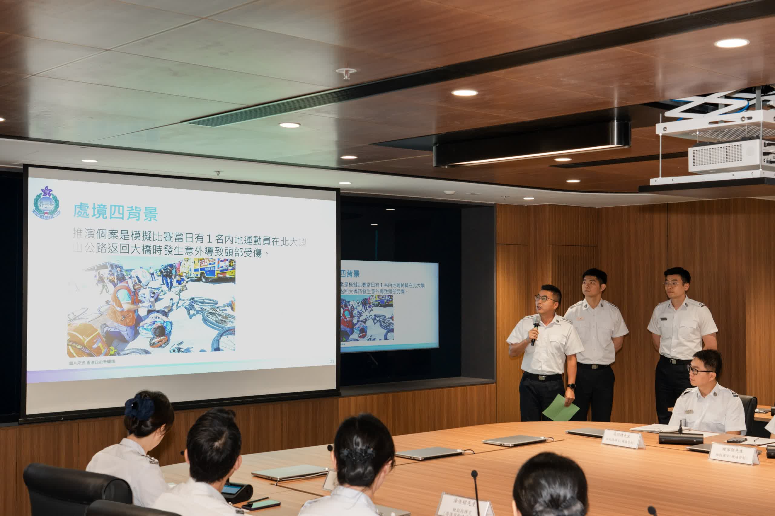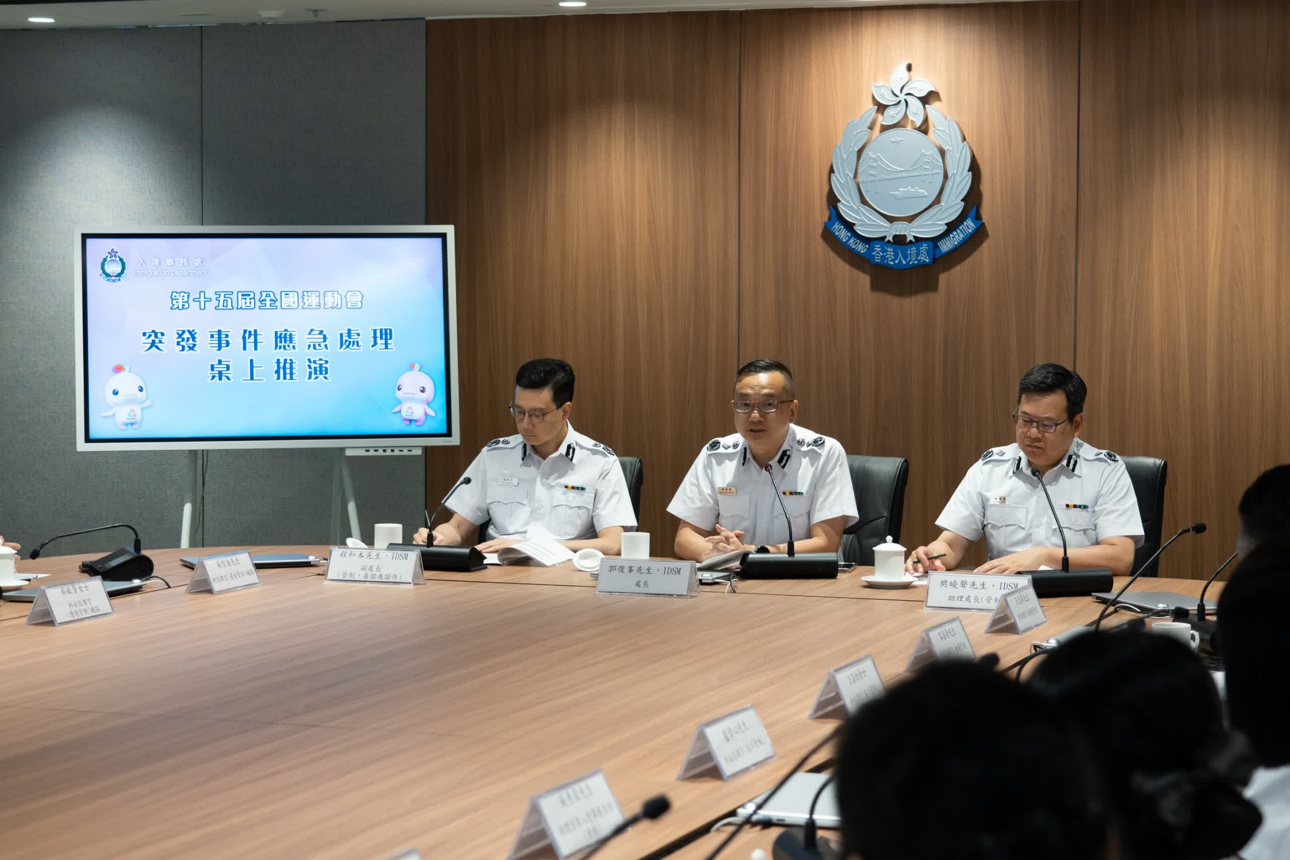 是次推演以模擬實際情境為基礎,重點針對十五運會和殘特奧會運動員或有關人士在管制站的出入境安排,以及十五運會跨境賽事中可能遇上的緊急情況,進行情境分析及流程推演,藉此加強入境處人員的應變及協作能力,確保各項安排更臻完善。推演進行期間,入境處處長郭俊峯、副處長(管制、簽證及證件)程和木、助理處長(管制)樊曉聲及各管制站指揮官一同聽取人員的匯報。