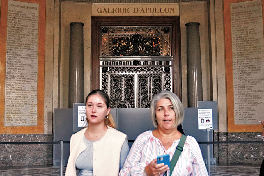 在周日(10月19日)上午,4名蒙面賊人到羅浮宮外,分工配合操作升降裝置,從建築物外部陽台潛入室內,用角磨機打碎展櫃搶走文物,更威脅博物館保安員,4人目前仍然在逃。法國文化部日前表示,共有9件價值難以估量的文物遭搶劫,其中一頂王冠已找到,目前下落不明的文物包括包括拿破崙一世送給妻子路易絲王后的祖母綠鑽石項鏈,以及曾屬於王后歐仁妮的后冠,上面鑲嵌近2,000顆鑽石。