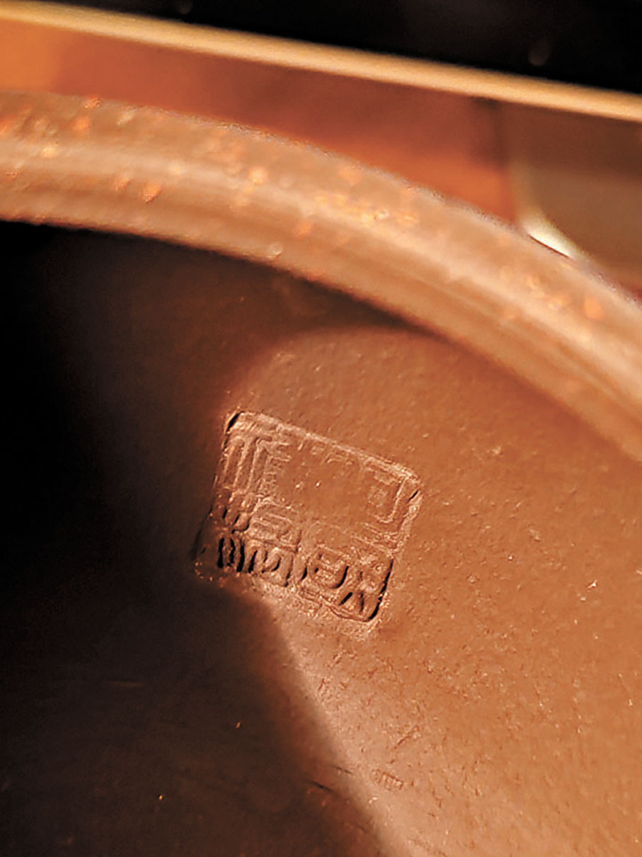 香港文匯報新聞調查部從多名製壺工匠處了解到,模具壺在製坯時,通常會在壺身中線處留下磨具的拼接縫,工匠取出壺坯後,會先行修坯,重點會打磨拼接縫,但或多或少仍會留下痕跡。而內壁章於全手工壺,一般是在壺身泥板圍圈黏合前,製壺匠人用硬質印章敲擊上去的,字跡一般比較清晰。但模具壺身因是一體成型,其內壁章一般是用專用的塑料薄片所製軟章,用手或工具按壓所蓋。加之壺坯本身有弧度,因此這種內壁軟章在模具壺內的字跡一般會受壓蓋時施力的影響,出現邊緣清晰中間模糊的現象。
