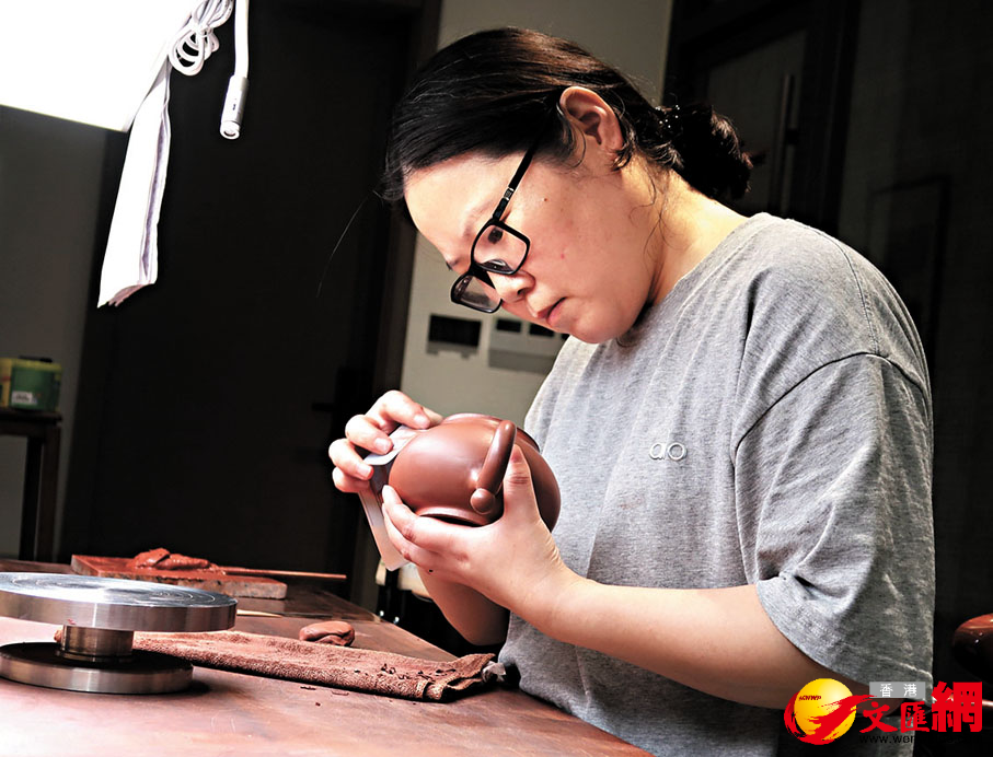 在大量模具壺傾銷於直播市場的當下,仍有宜興本土紫砂藝人努力守住品質。國家級高級工藝美術師陳正初女兒、工藝美術師陳維對香港文匯報新聞調查部說,機車壺、灌漿壺對市場的衝擊很大,但作為手藝人,不會為了多賣壺上網去蹚渾水、博流量,「會保持定力,正正規規地去做這一行。」