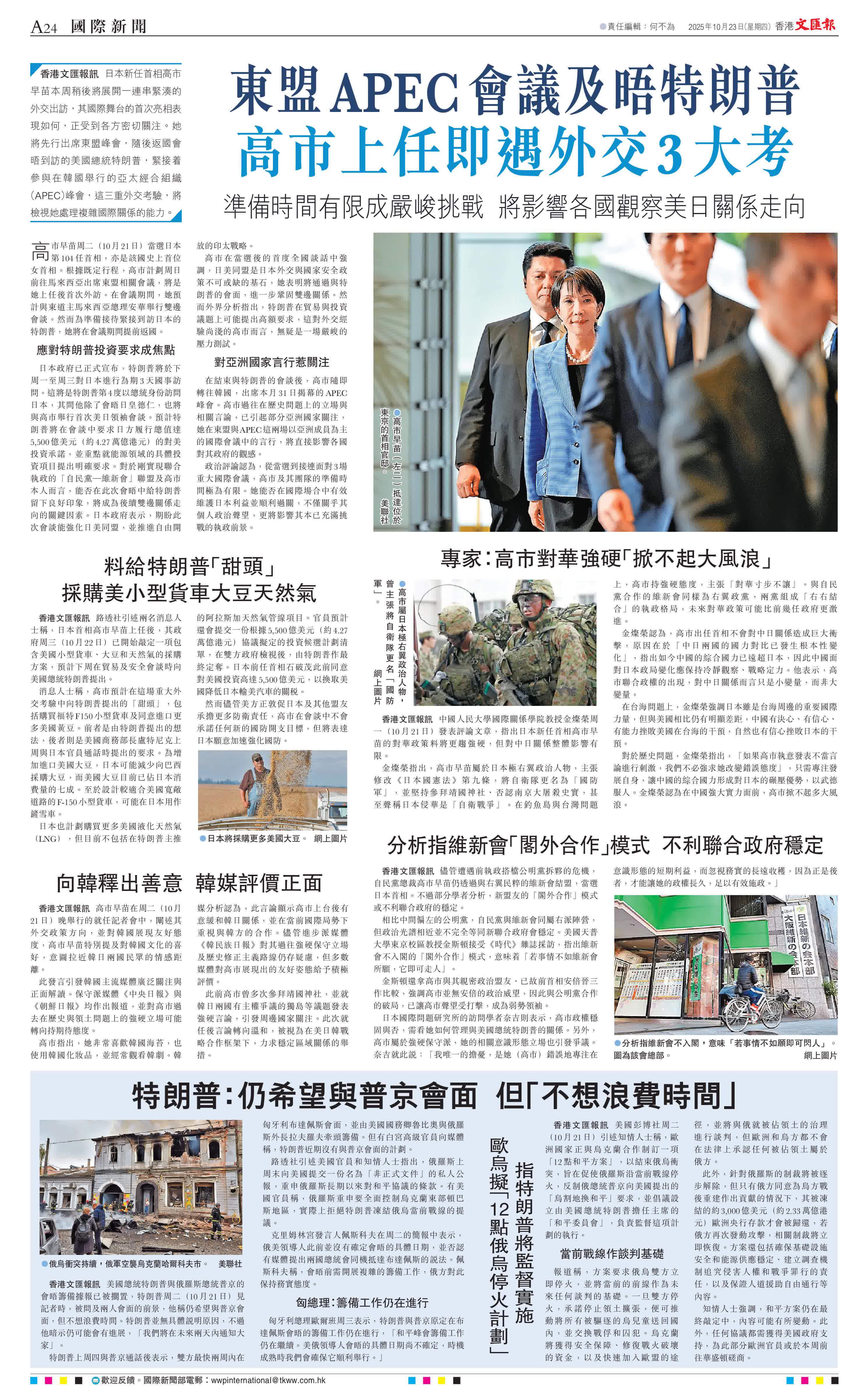 香港文匯報訊 美國總統特朗普與俄羅斯總統普京的會晤籌備據報已被擱置,特朗普周二(10月21日)見記者時,被問及兩人會面的前景,他稱仍希望與普京會面,但不想浪費時間。特朗普並無具體說明原因,不過他暗示仍可能會有進展,「我們將在未來兩天內通知大家」。