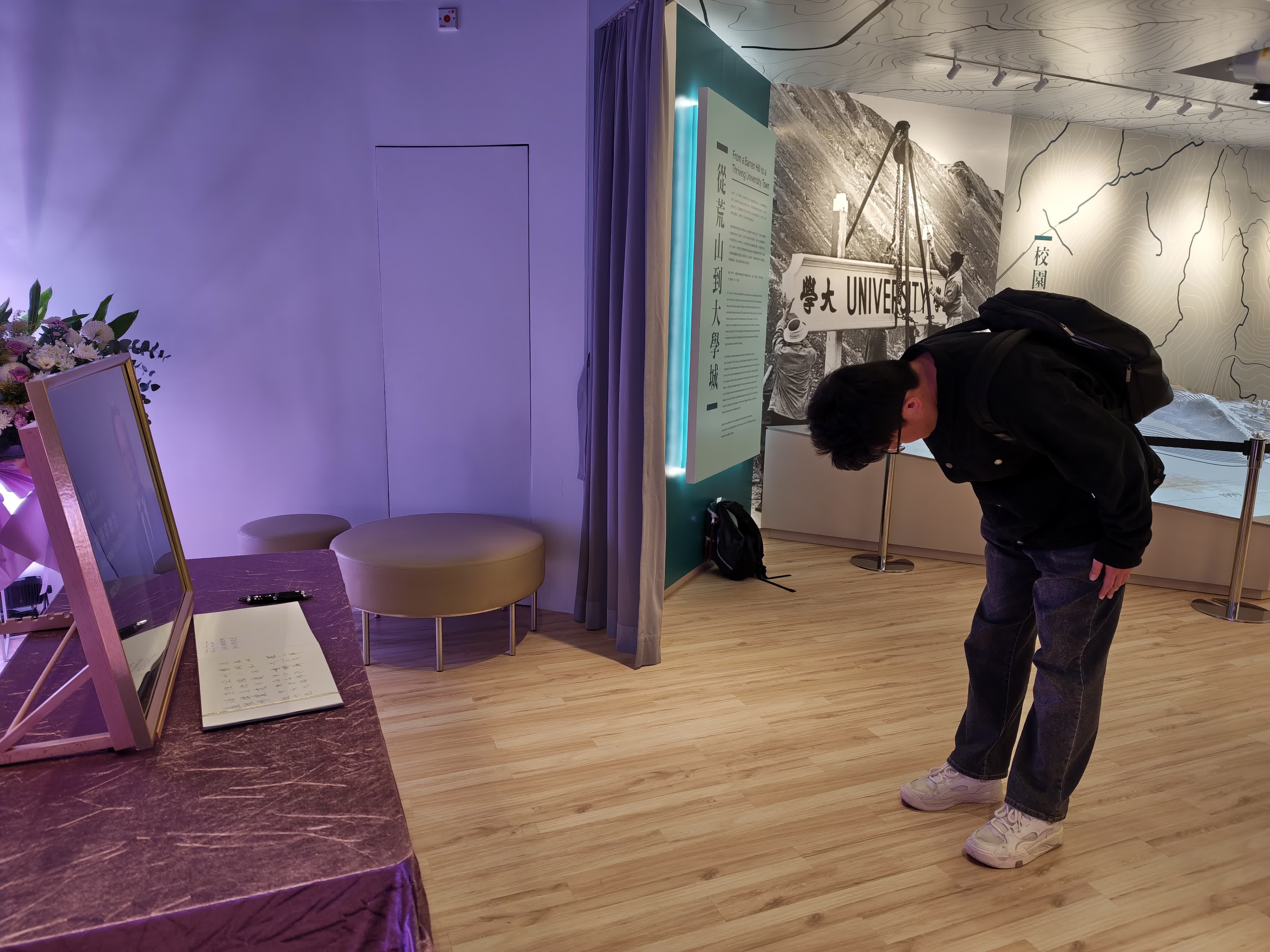 在中大物理系讀博士的王先生在弔唁室開放不久後便來到現場,他表示,楊振寧是他「心中崇拜的偶像」,在得知楊振寧去世消息的幾天裏他的「心裏一直感到很沉重」,今天特地前來弔唁。楊振寧曾多次來到中大授課,王先生稱自己入學較晚,並未有機會和他見面,對此感到非常遺憾。