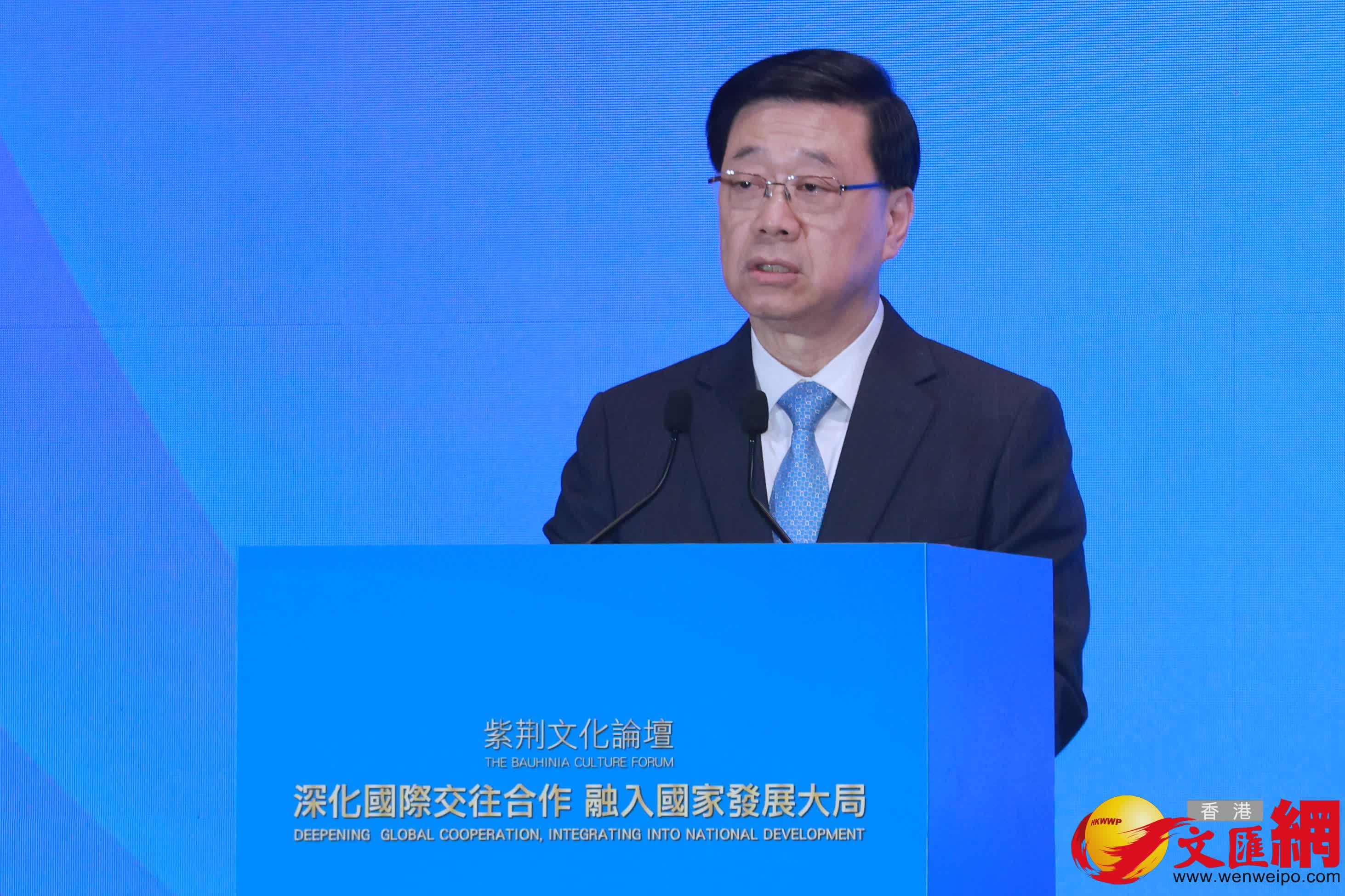 香港特別行政區行政長官李家超今日(23日)出席紫荊文化論壇致辭時表示,今年論壇以「深化國際交往合作,融入國家發展大局」為主題,共同探討香港如何更好善用自身優勢,以「一國」為根,發揮「兩制」之利,以香港所長,服務國家所需。在「一國兩制」下,香港享有國家機遇和國際機遇的雙重疊加優勢。國家作為全球第二大經濟體,貢獻全球經濟增長超過三分之一,是香港發展的最大機遇和最強的後盾。
