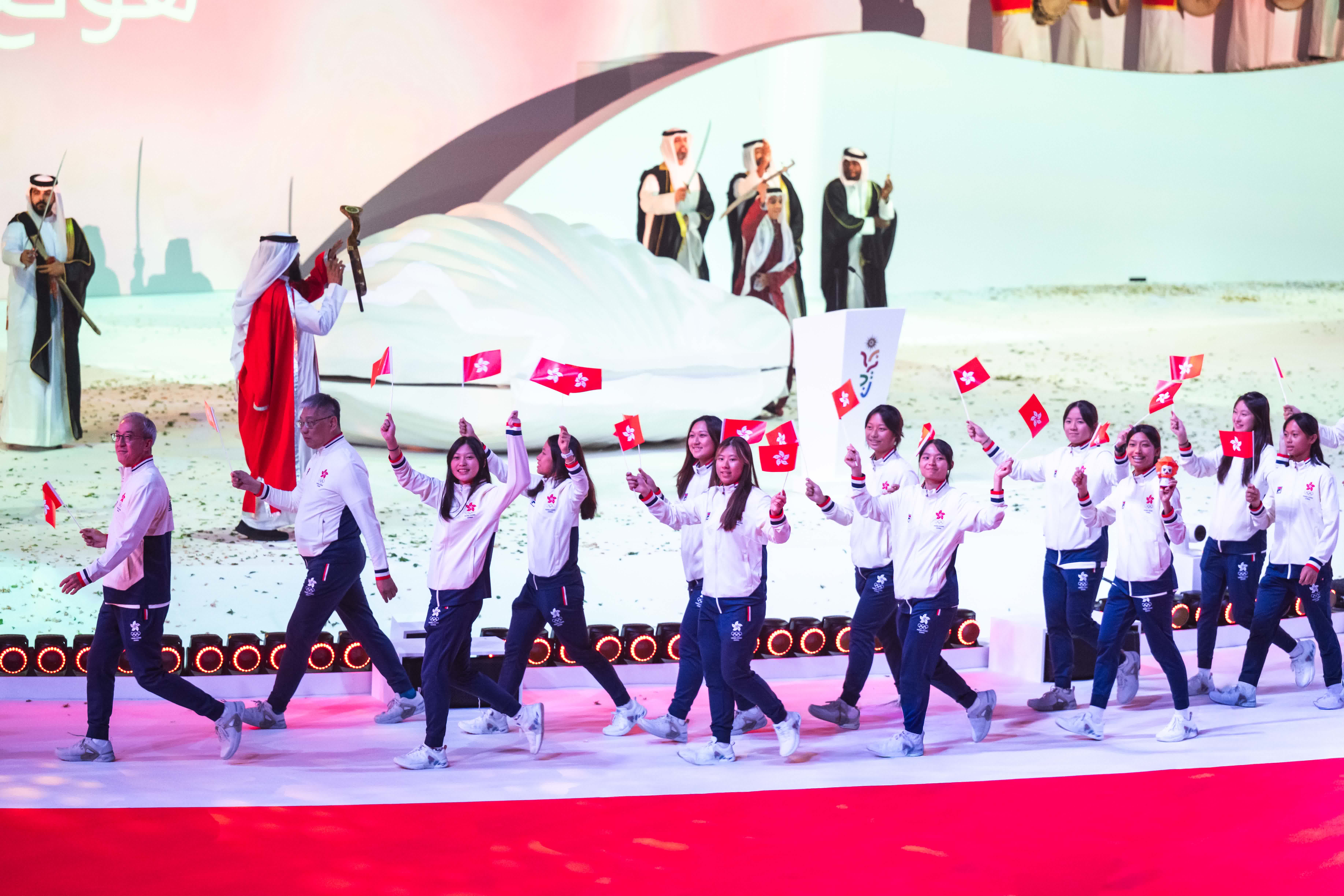 香港文匯報訊 2025年亞洲青年運動會(亞青運)於巴林正式揭幕,開幕禮在巴林會展世界中心舉行。中國香港代表團由單車運動員羅靖喬及跆拳道運動員鄭裕禮擔任持旗手,領隊進場。港協暨奧委會會長霍震霆再次以亞奧理事會代理主席身份主禮並致辭,感謝巴林全力籌辦賽事,並勉勵青年運動員勇於追夢,透過運動廣結友誼。