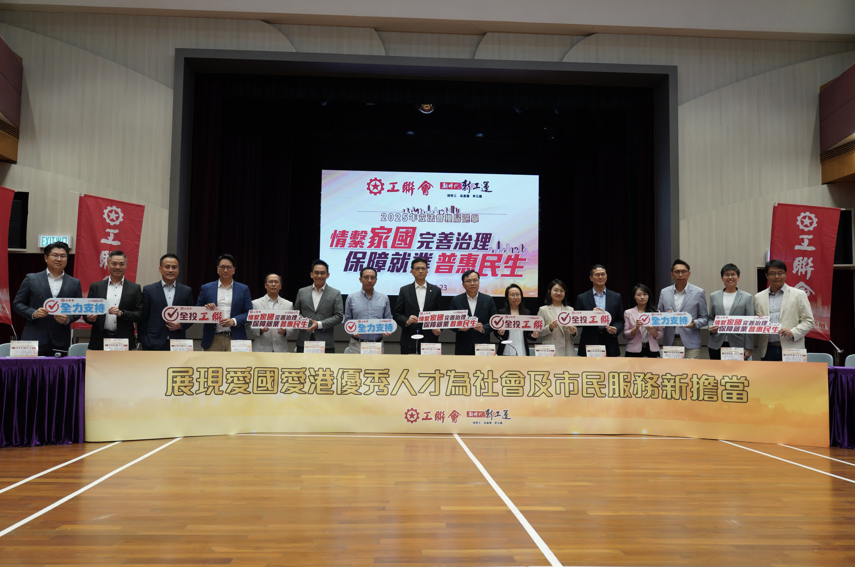 香港工會聯合會(工聯會)理事會今日(23日)舉行記者會,公布2025年立法會換屆選舉參選名單,共16位參選人,其中有7位參選人尋求連任。工聯會亦公布十大政綱將作為團隊進入立法會後的工作藍圖。