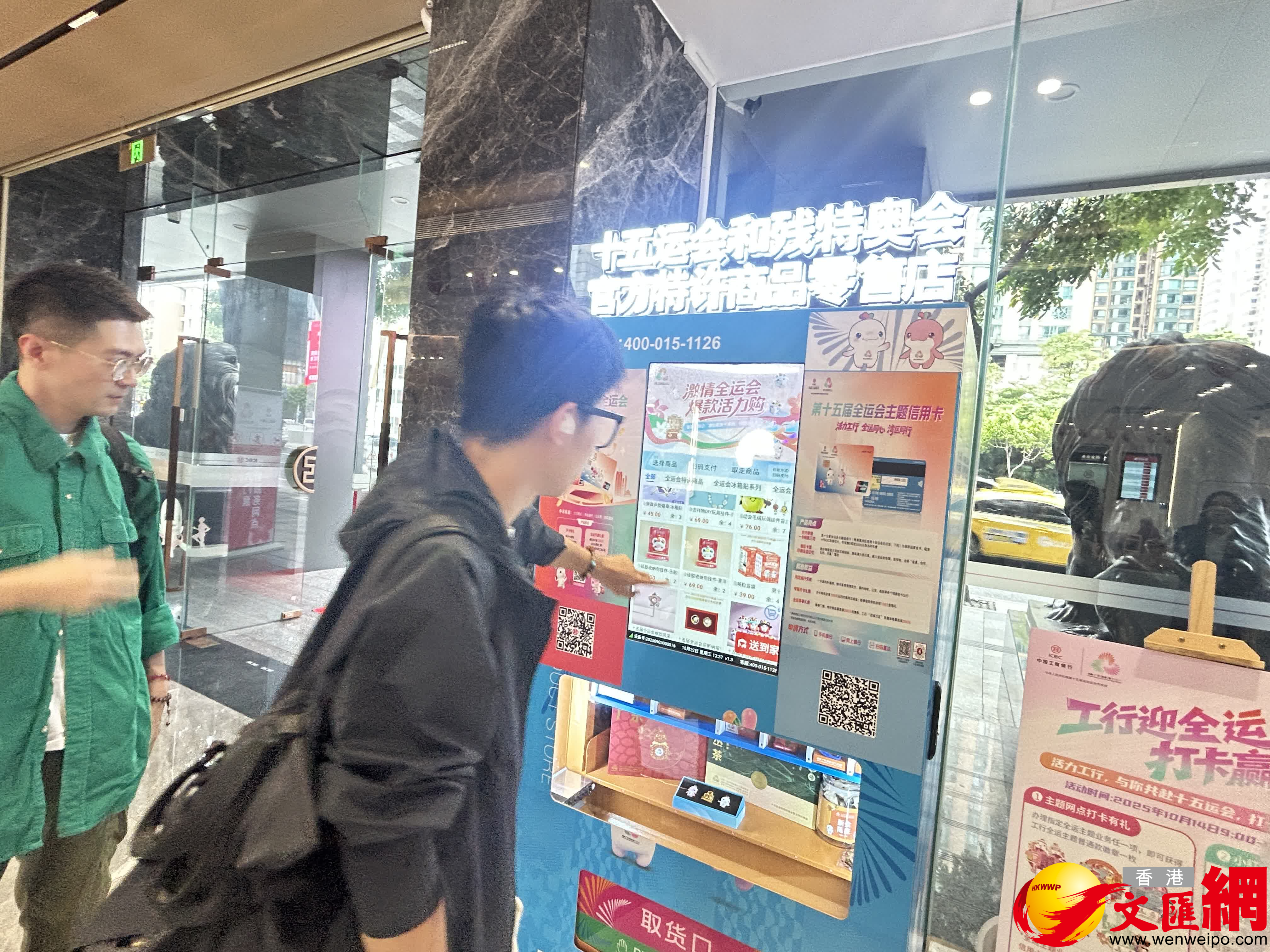在中國工商銀行廣州天河支行,全運氛圍十分濃厚。除了各類全運裝扮元素,還有全運會特許商品售賣機,現場還設立全運門票銷售專窗。